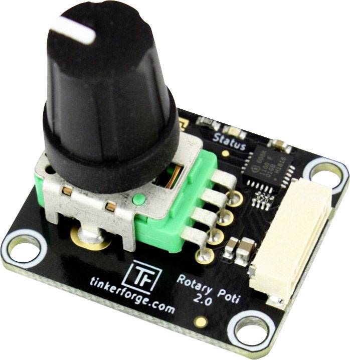 Das Rotary Poti Bricklet ist mit einem Dreh-Potentiometer ausgestattet, dessen Position über einen Brick ausgelesen werden kann. Zusätzlich können Events konfiguriert werden, die ausgelöst werden, wenn eine spezifizierte Position erreicht wird.