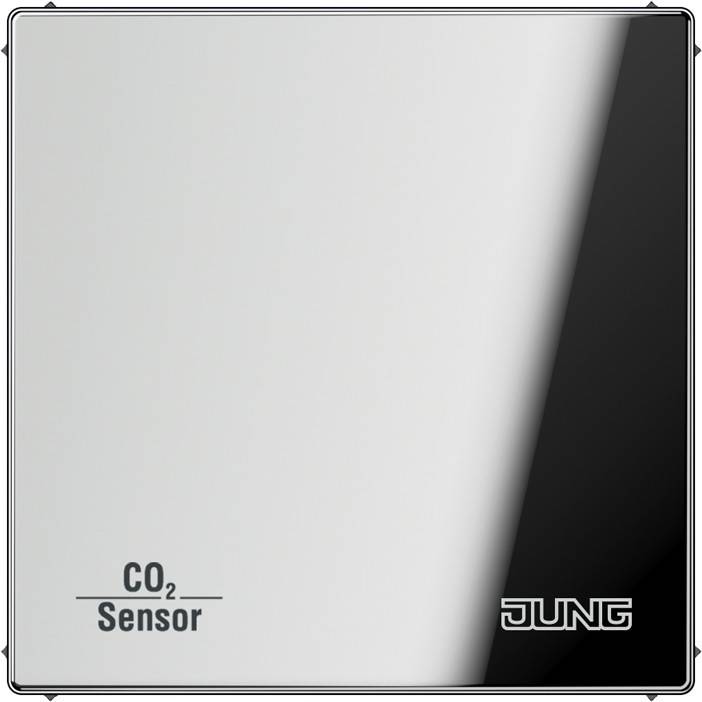 KNX CO2-Sensor, glanzchrom mit integriertem Busankoppler mit Luftfeuchtesensor und Raumtemperaturregler mit integrierter Tasterschnittstelle 2fach Bestimmungsgemäßer Gebrauch Messen von CO2-Konzentration, relativer Luftfeuchte und Lufttemperatur Ausgabe der gemessenen Werte als Telegramm auf den Bus, z.B. zum Steuern von Lüftern oder Fensterantrieben über KNX-Telegramme Einzelraum-Temperaturregelung in KNX-Installationen Montage in Gerätedose mit Abmessungen nach DIN 49073 Produkteigenschaften Grenzwertüberwachung für CO2-Konzentration (max. 4 Grenzwerte) und Luftfeuchte (max. 2 Grenzwerte) Taupunktalarmierung z.B. für Kühldecken und Wintergärten, zur Vermeidung von Schimmelbildung Zwei Binäreingänge zum Anschluss potentialfreier Kontakte, z.B. Taster, Schalter, Fensterkontakte Logikgatter für einfache Verknüpfungsfunktionen KNX Medium: TP 256 Nennspannung KNX: DC 21 ... 32 V SELV Stromaufnahme KNX: typ. 12,5 mA max. 25 mA (4 s/15 s zyklisch) Anschluss KNX: Anschlussklemme Schutzklasse: III Umgebungstemperatur: -5 ... +45 °C Binäreingänge Leitungslänge: max. 5 m Leitungstyp: J-Y(St)Y 2 x 2 x 0,8 mm CO2-Sensor Messbereich: 0 ... 2000 ppm Feuchtesensor Messbereich: 10 ... 95 % relative Feuchte (rF) Temperatursensor Messbereich: -5 ... +45 °C