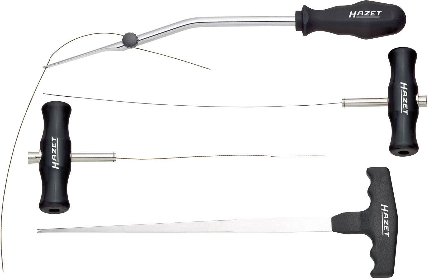 Geeignet für alle geklebten Windschutzscheiben sowie die meisten Heck- und Seitenscheiben · Vierkant-Schneidedraht zum schnellen und einfachen Durchtrennen der gebräuchlichsten Kleberaupen · Sägedraht aus drei vermessingten Stahldrähten gedreht, für besonders breite oder harte Kleberaupen · Robuster Drahtstarter aus Federstahl mit großem T-Griff zum Durchstechen des Drahtes · Gegenhalter mit langem Schaft und stabilem M4-Gewinde sichert den Halt des Schneidedrahtes vom Innenraum aus · Selbstschließende Sicherheits-Zuggriffe halten den Säge- oder Schneidedraht zuverlässig fest. Sortiment aus bewährten Handwerkzeugen zum Austrennen geklebter Fahrzeugscheiben.
