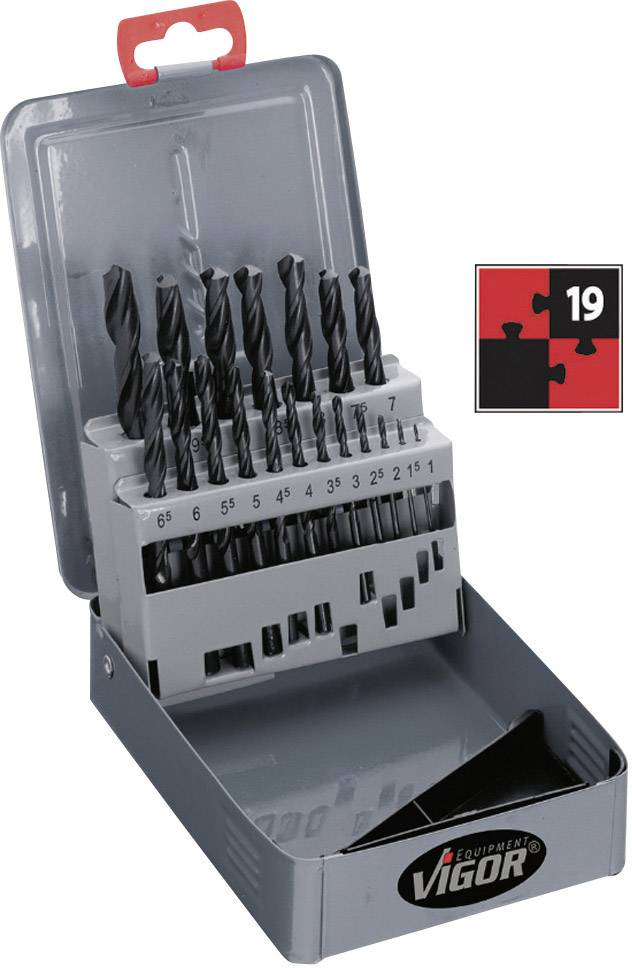 Vigor V1203 HSS Metall-Spiralbohrer-Set 19teilig rollgewalzt DIN 338 Zylinderschaft 1 Set