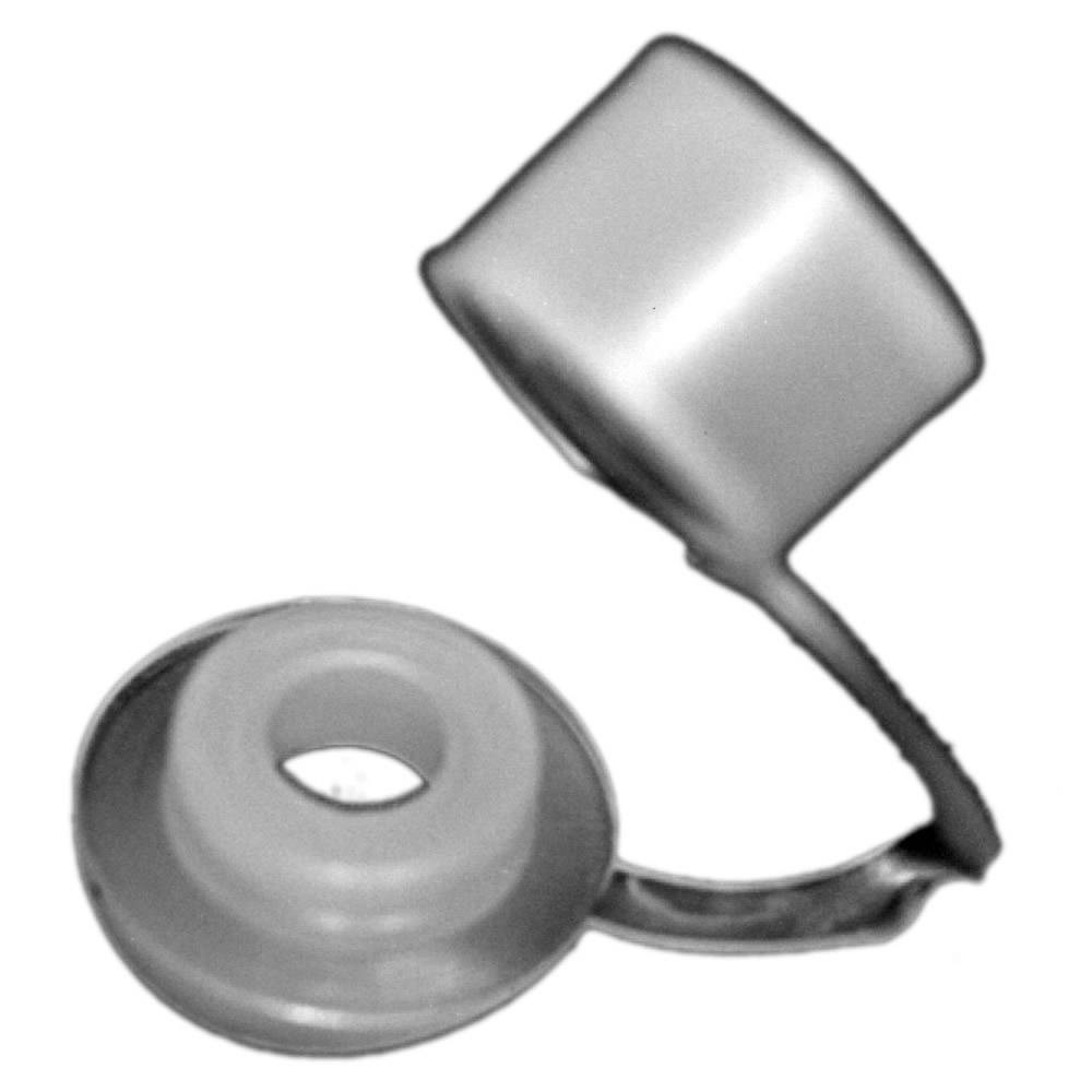 Die anhängende kurze Abdeckkappe wird auf dem Kopf der einzuschraubenden Sechskant-Holzschraube verklemmt.