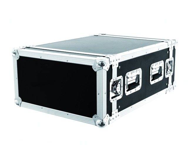 Professionelles Flightcase für 483-mm-Geräte (19") · Rackschienen mit 6 HE Montagemöglichkeit für 483-mm-Geräte (19"), wie Endstufen, Lichtendstufen, Zusatzgeräte · Rackschienen vorne und hinten · 2 abnehmbare Deckel (Double-Door-Version) · Max. Einbautiefe 550 mm (zzgl. 90 mm pro Deckel) · Hochwertige Verarbeitung mit 7 mm mehrschichtig verleimtem Holz, schwarz laminiert · Aluminiumprofilrahmen (30 mm) mit abgerundeten Ecken · Dreischenklige, mittelgroße Stahlkugelecken · 4 hochwertige Butterfly-Schlösser (ohne Absperrfunktion) · 2 Holzgleitschienen am Boden · 4 verchromte Case-Klappgriffe · Lieferung mit Montageschrauben · In verschiedenen Höheneinheiten erhältlich (1 HE = 44 mm)