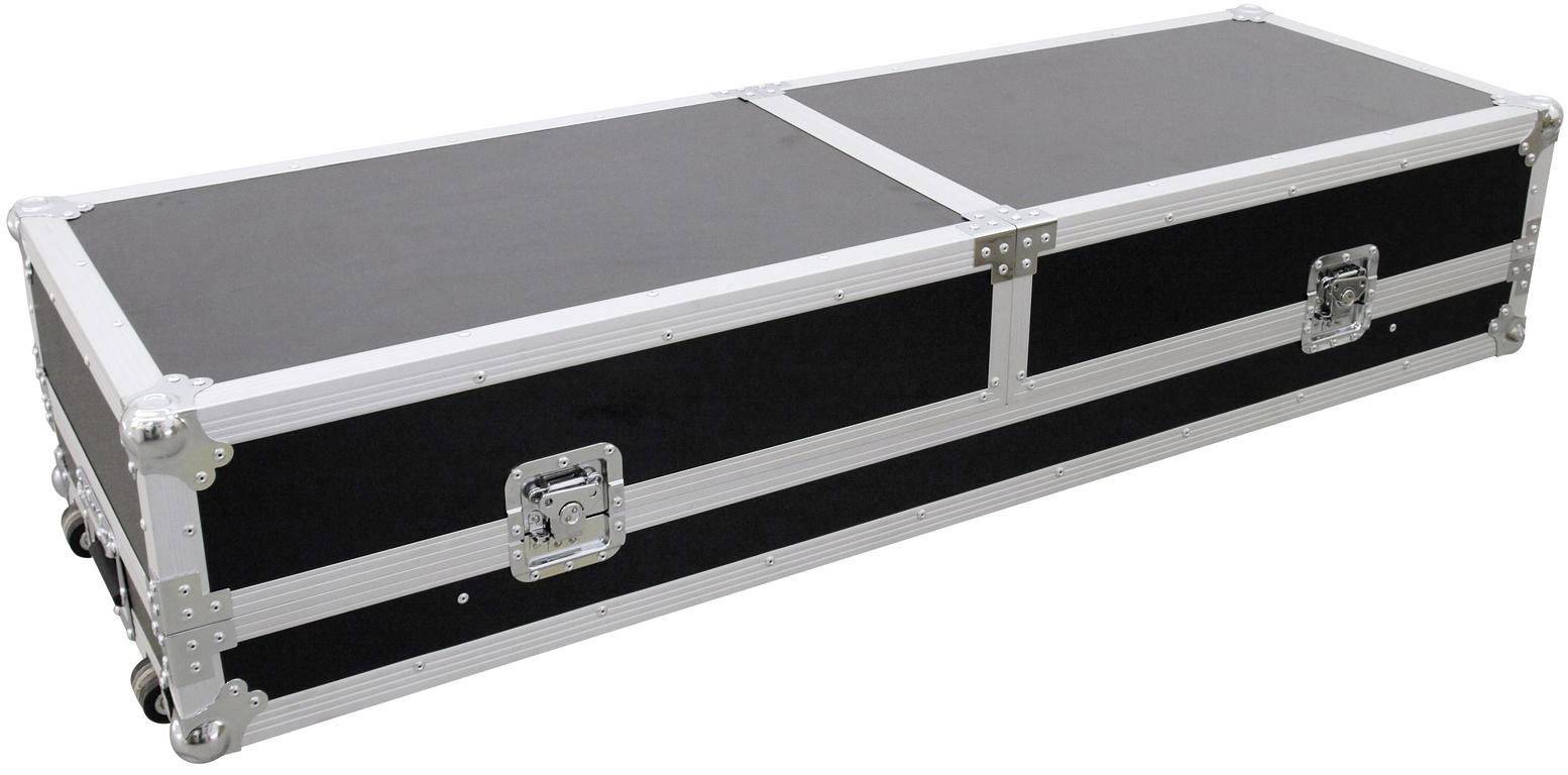 Professionelles DJ-Arbeitspult mit Rollen und Laptopablage · Professionelle Lösung für ein komplettes DJ-Setup; das heavy-duty Case bietet Platz für zwei Plattenspieler und mehrere 19"-Geräte und kann mit wenigen Handgriffen auf- und abgebaut werden · Unterteil mit schräg gestellten Profilschienen mit 9 HE z. B. für Mischpulte, Bedienteile von Doppel-CD-Playern, Pultbeleuchtung sowie Montagemöglichkeit für zwei Plattenspieler · Rutschfeste, verschiebbare Ablage für alle gängigen Laptopgrößen · Abnehmbarer Deckel und Seitenteile dienen zur Konstruktion eines stabilen Arbeitspults · Schaumstoffpolsterung zum Schutz der Plattenspieler gegen Vibrationen · Hochwertige Verarbeitung mit 7 mm Multiplexholz, schwarz laminiert · Aluminiumprofilrahmen (25 mm) mit abgerundeten Ecken · Dreischenklige, mittelgroße Stahlkugelecken · 4 Butterfly-Schlösser · Gepolsterte Tragegriffe · 2 Transportrollen · Lieferung mit Montageschrauben