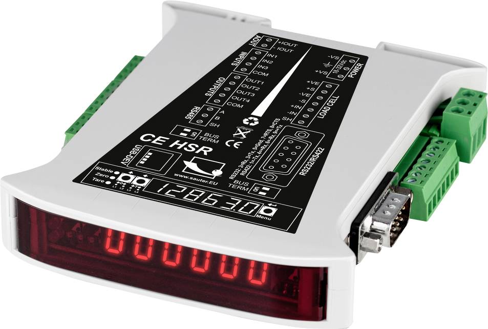 Kompaktes Auswertegerät für das Erfassen von Wägedaten mittels DMS-Wägezellen z.B. in industriellen Anwendungen. Durch die kleine Bauform besonders platzsparend in Schaltschränken zu installieren. Dank der vielen Schnittstellenvarianten lassen sich die Module ideal in vorhandene Infrastrukturen und Systeme einbinden|- Die Module können entweder einzeln oder als Buslink-System mit insgesamt bis zu 332 Hutschienenmodulen verwendet werden. Die Konfiguration des Moduls kann bequem über einen angeschlossenen PC mit der mitgelieferten Software ausgeführt werden. Leuchtstarke LED Anzeige für die optische Kontrolle und für Einstellungen. Zeitsparende G-Cal TM-Technologie (Geographische Kalibrierung) für schnelle und genaue Kalibrierung ohne Gewichte bequem über ein Netzwerk oder das Internet weltweit. Komfortable Kommunikation über Remote-Geräte|- Backup- und Wiederherstellungsfunktion über USB-Anschluss|- Beherrscht verschiedene Industrieprotokolle wie z.B. Ethernet IP, Modbus TCP, Modubs RTU, FINS und Profibus DP|- Extrem hohe Messfrequenz möglich, bis zu 1600 Datensätze/s. Interne Auflösung 24 Bit|- Großanzeige YKD-A02: nur geeignet für CE HSR.
