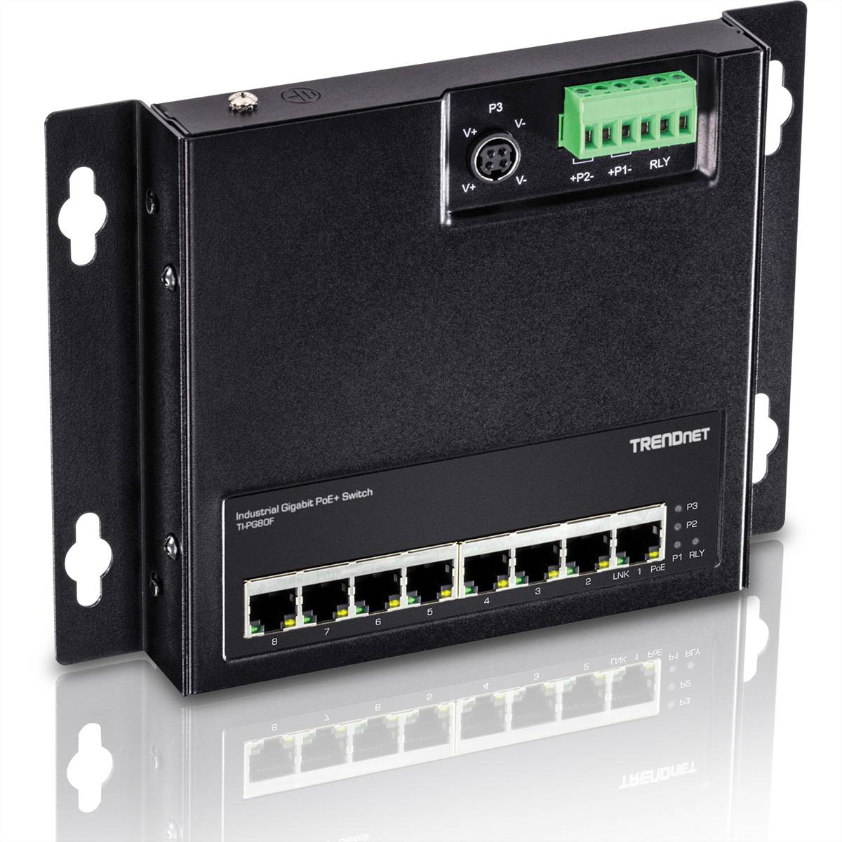 TRENDnet TI-PG80F 8-Port Industrial PoE+ Gigabit Wall-Mount Front Access Switch