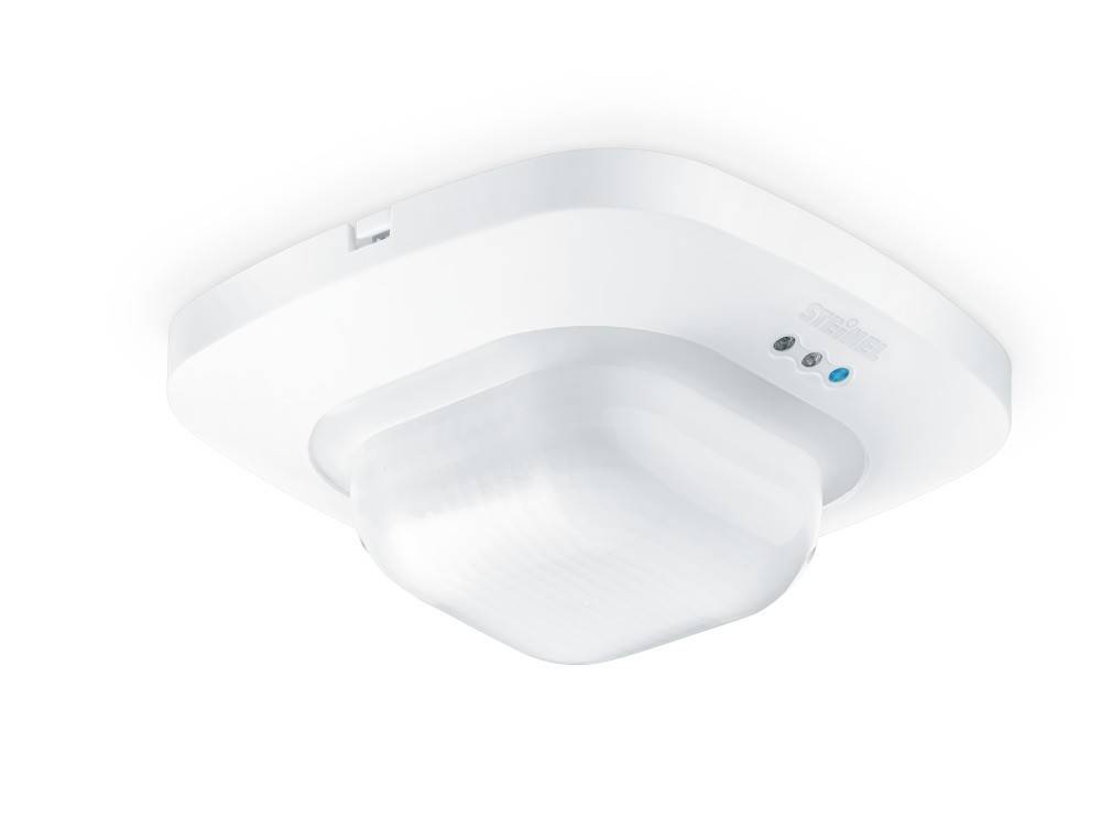 Die Quadratur des Kreises. Infrarot-Präsenzmelder Presence Control PRO IR Quattro KNX für innen, ideal für kleine Büros, Abstell-, Versorgungs- und Hauswirtschaftsräume, Waschräume und WCs, Montagehöhe bis 8 m, mit digitaler BUS-Schnittstelle zum Regeln von 4 Lichtkanälen und HLK, 1760 Schaltzonen für exzellente Erfassungsqualität, quadratische Erfassung mit 16 m² Präsenzbereich, quadratische Erfassung, mechanisch skalierbar.