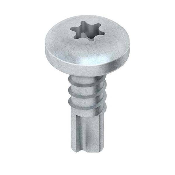Linsenkopf-Bohrschraube mit TX20 ähnlich DIN EN ISO 15481, Bohrspitze aus Einsatzstahl, gehärtet, mit Blechschraubengewinde, zur Befestigung der Verkleidungen an Rinnendistanzbügel/Stütze sowie zur Fixierung der begehbaren Kabelrinnen auf Rinnendistanzbügel/Stütze/Bodenstütze. Verwendung für : Verkleidungen VBASB... an Rinnendistanzbügel RDB 85. .../Stütze RSSTAU 108. ..., begehbare Kabelrinnen auf Distanzbügel RDB 85. .../Stütze RSSTAU 108. .../Bodenstütze RSSBP ... Abmessungen (ca. Maße) Nenn-Ø Blechschraubengewinde : 4,2 mm Länge L : 13 mm Werkstoff : Stahl, galvanisch verzinkt DIN EN ISO 2081 / 4042, blaupassiviert