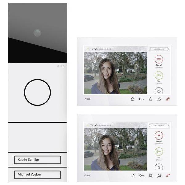 System 106 Zweifamilienhaus-Paket Wohnungsstation Video AP 7 Verkehrsweiß (lackiert) Ausführung in Edelstahlvariante V2A oder Verkehrsweiß (lackiert). 1 x Steuergerät Video, {b}1288 00{b}.