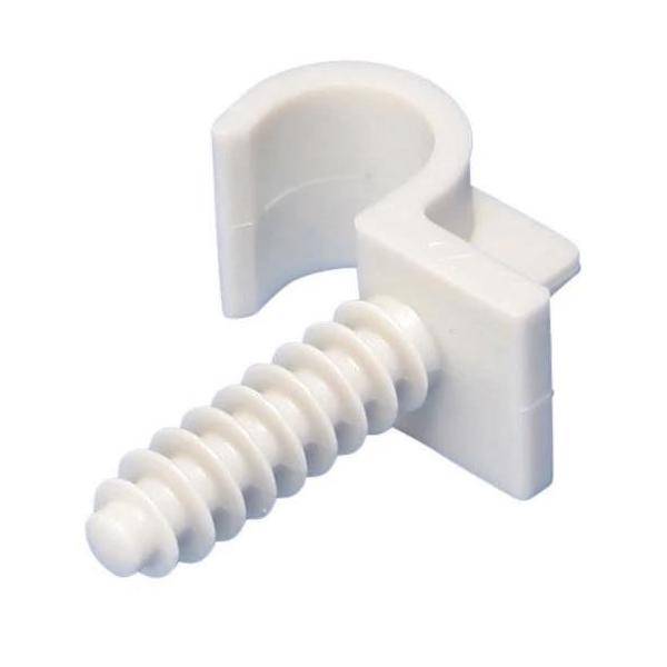 Plastikclip zum Halten von einem Rohr / Kabelschutzrohr, zum Einschlagen. In gebohrtem Loch in Mauerwerk oder Beton befestigen.