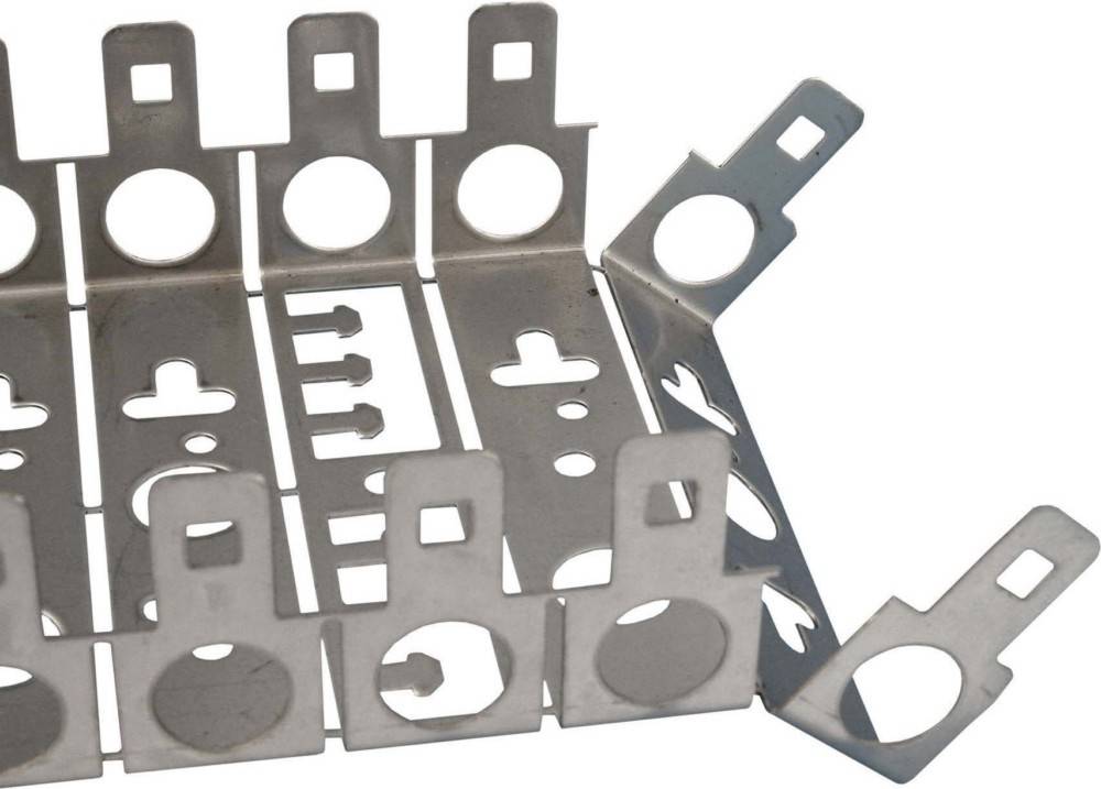 Montagewanne flexibel Rastermaß 27.5 mm Tiefe 50 mm für 21 Module 2/10 zur Aufnahme von LSA-Modulen 2/10 für Montagebügel 3 sich wiederholende verschiedene Lochbilder Stege zwischen den einzelnen Modulen können mit Seitenschneider getrennt werden