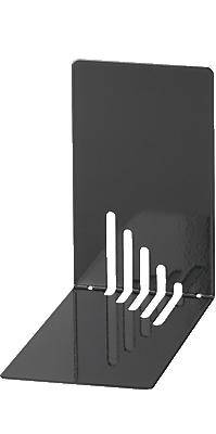 Buchstützen aus pulverbeschichtetem Metall, dekorative Gestaltung, kratzfeste Oberfläche, keine scharfen Kanten.