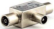 2-fach Radio-Verteiler, 75 Ohm, zum Anschluss von 2 Radiogeräten, voll abgeschirmt, Druckgussgehäuse, Gleichspannungsdurchgang, nach DIN 45 325, mit transformatorischer Entkopplung, Koax-Stecker + 2 Koax-Kupplungen, SB-Verpackung