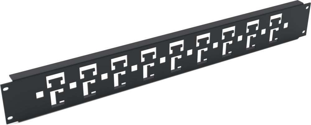 Kabelabfangschiene für 600 mm Schranktiefen zur Montage in IT- (F1) und Serverschränken (S1) sowie in Grundgestellen (Fo1, So1), horizontale Montage über die gesamte Schrankbreite, Befestigung direkt an den Eckprofilen des Schrankes, für Kabelbinder und Löcher für Käfigmuttern, Oberflächenbehandlung: Strukturlack Enoc System Schwarz RAL 9005