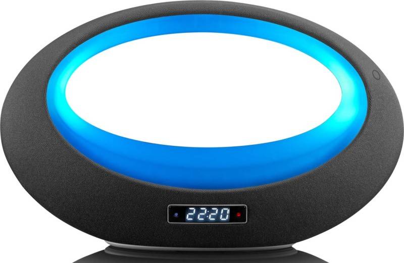 Bluetooth-Stereo-Lautsprecher mit intelligenter LED-Beleuchtung, App-Steuerung (iOS und Android), 4 verschiedene Farbthemen, 2 eingebaute Lautsprecher mit 6 W (RMS) Ausgangsleistung, integr. Akku, Spielzeit bis zu 10 Std., 3,5 mm AUX-Eingang, Lieferung inkl. Micro-USB-Kabel