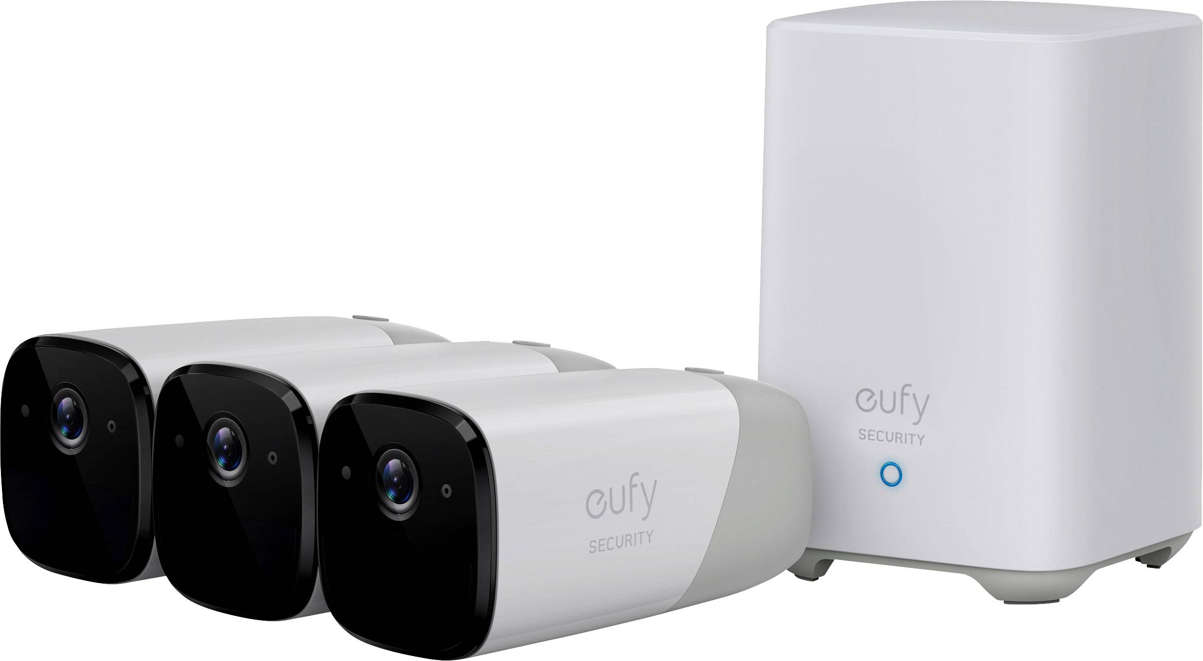 Set enthällt drei eufyCam 2 Sicherheitskameras und die Homebase 2.