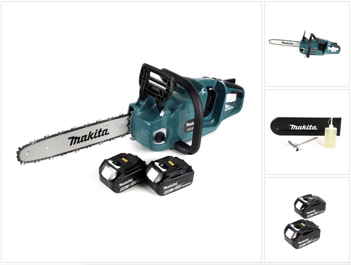Die Kettensäge aus dem Makita Gartensortiment überzeugt mit universellen Einsatzmöglichkeiten: Mit 36 Volt Spannung meistert die Säge auch schwierigste Herausforderungen. Die 35 cm Garnitur eignet sich sowohl für Brennholz, Baumfällarbeiten, Balken- sowie Plankenschnitt. Durch die Verwendung eines BL (Brushless) Motors wird die Akkukapazität noch effizienter genutzt als mit herkömmlichen Elektromotoren. Ausserdem werden keine Kohlebürsten mehr verschlissen. Die variable Geschwindigkeitssteuerung am Abzug passt die Kettengeschwindigkeit auf bis zu 20 m/s an. Die konstante Geschwindigkeitssteuerung verleiht dem Motor mehr Kraft, um die Geschwindigkeit unter Belastung aufrecht zu halten. Für die Sicherheit und ermüdungsfreies Arbeiten sorgen die Ketten- und die Motorbremse sowie der ergonomisch gummierte Griff. Die automatische Kettenschmierung mindert den Verschleiß und sorgt für eine längere Lebensdauer der Sägekette.