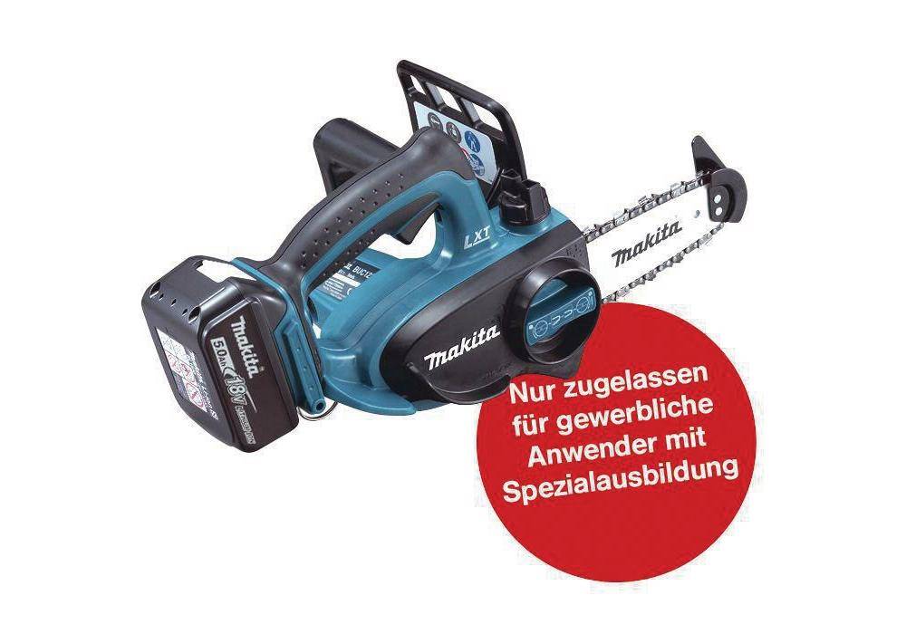 Weitere technische Eigenschaften: · Gewicht: 7,745kg · prüfpflichtig: ja · K-Wert Geräusch: 2 dB(A) · Höhe: 335 mm · Breite: 245 mm · Schalldruckpegel: 84 dB(A) · Schallleistungspegel: 92 dB(A) · Schnittlänge: 11,5 cm · Sortiment: Maschinen · UN-Nummer: UN3481 · Sägekettenteilung: 1/4 Zoll · Kettengeschwindigkeit: 300 m/min · Öltank: 80 ml Mitgeliefertes Zubehör: Transportkoffer (Art. 824820-6), Feile 4 (Art. 744003-1), Sägekette 11,5cm 1,3mm 1/4" (Art. 572466042), Kontaktschutzkappe (Art. 450128-8), Handgriff (Art. 419360-3), Sägekettenschutz 21x10cm (Art. 416311-7), Akku-BL1850 18V 5,0 Ah (Art. 196672-8), Ladegerät DC18RC (Art. 195584-2), Kettensägenhaftöl 100ml (Art. 182229-1), Kofferverschluss (Art. 163455-1), Sägeschiene 11,5cm 1,3mm 1/4" (Art. 158476-6) · Hinweis zur Entsorgung von Batterien und Akkus Da wir Batterien und Akkus bzw. solche Geräte verkaufen, die Batterien und Akkus enthalten, sind wir nach dem Batteriegesetz (BattG) verpflichtet, Sie auf Folgendes hinzuweisen: Das Symbol des durchgestrichenen Mülleimers auf Batterien oder Akkumulatoren bedeutet, dass diese nach Verbrauch nicht im Hausmüll entsorgt werden dürfen. Sofern Batterien oder Akkumulatoren Quecksilber, Cadmium oder Blei enthalten, finden Sie das jeweilige chemische Zeichen (Hg, Cd oder Pb) unterhalb des Symbols des durchgestrichenen Mülleimers. Jeder Verwender von Batterien oder Akkumulatoren ist gesetzlich verpflichtet, alte Batterien und Akkumulatoren zurückzugeben. Sie können dies kostenfrei im Handelsgeschäft oder bei einer anderen Sammelstelle in Ihrer Nähe tun. Adressen geeigneter Sammelstellen in Ihrer Nähe können Sie von Ihrer Stadt-oder Kommunalverwaltung erhalten. Bei Batterien, die mehr als 0,0005 Masseprozent Quecksilber, mehr als 0,002 Masseprozent Cadmium oder mehr als 0,004 Masseprozent Blei enthalten, befinden sich unter dem Mülltonnen-Symbol die chemischen Bezeichnungen des jeweils eingesetzten Schadstoffes. Die chemischen Bezeichnungen haben dabei folgende Bedeutung: