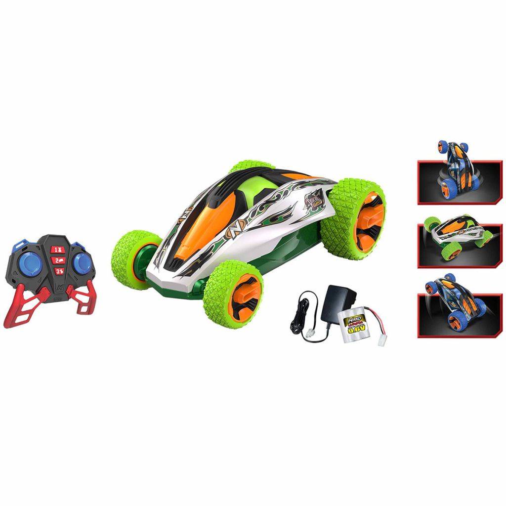 Überraschen Sie Ihre Kinder mit diesem bahnbrechenden, funkgesteuerten Psycho Gyro Stunt-Auto von Nikko, das Wheelies und Spins dreht! Neben der exklusiven Gyro-Stunt-Steuerungstechnologie verfügt dieses ferngesteuerte Spielzeugauto auch über die 2,4-GHz-Funktechnologie, dank deren der Stuntwagen mit bis zu 10 Fahrzeugen gleichzeitig störungsfrei am Autorennen teilnehmen kann und das bei einer Funkreichweite von bis zu 40 m. Die Lieferung beinhaltet ein Stuntauto, ein Fernsteuergerät, 3 AAA-Batterien (für den Sender), einen 9,6V LiFePO4-Akku und ein 1-h-Schnellladegerät. Farbe: Grün, Orange und Weiß Material: Kunststoff Reichweite: bis zu 40 m Gyro Stunt Control Technologie: Spins, Wheelies und Skiing 2,4 Ghz Funk-Technologie Mit bis zu 10 Fahrzeugen gleichzeitig störungsfrei fahren Altersempfehlung: ab 8 Jahren Lieferung beinhaltet: 1 x Stunt-Auto 1 x Fernsteuerung 3 x AAA Batterie (für die Fernsteuerung) 1 x 9,6 V LiFePO4 Batteriesatz 1 x 1-h-Schnellladegerät