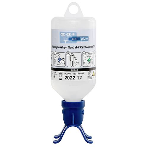 Augenspülfalsche pH Neutral DUO für die gleichzeitige Spülung von beiden Augen, mit 500 ml steriler Phosphatpufferlösung (4,9%). Für die schnelle Neutralisation von Säuren und Laugen. Ausgestattet mit Augenaufsatz zum gleichzeitigen Spülen beider Augen. Auch für die Nachfüllung der Augen-Notfallstation DUO geeignet.