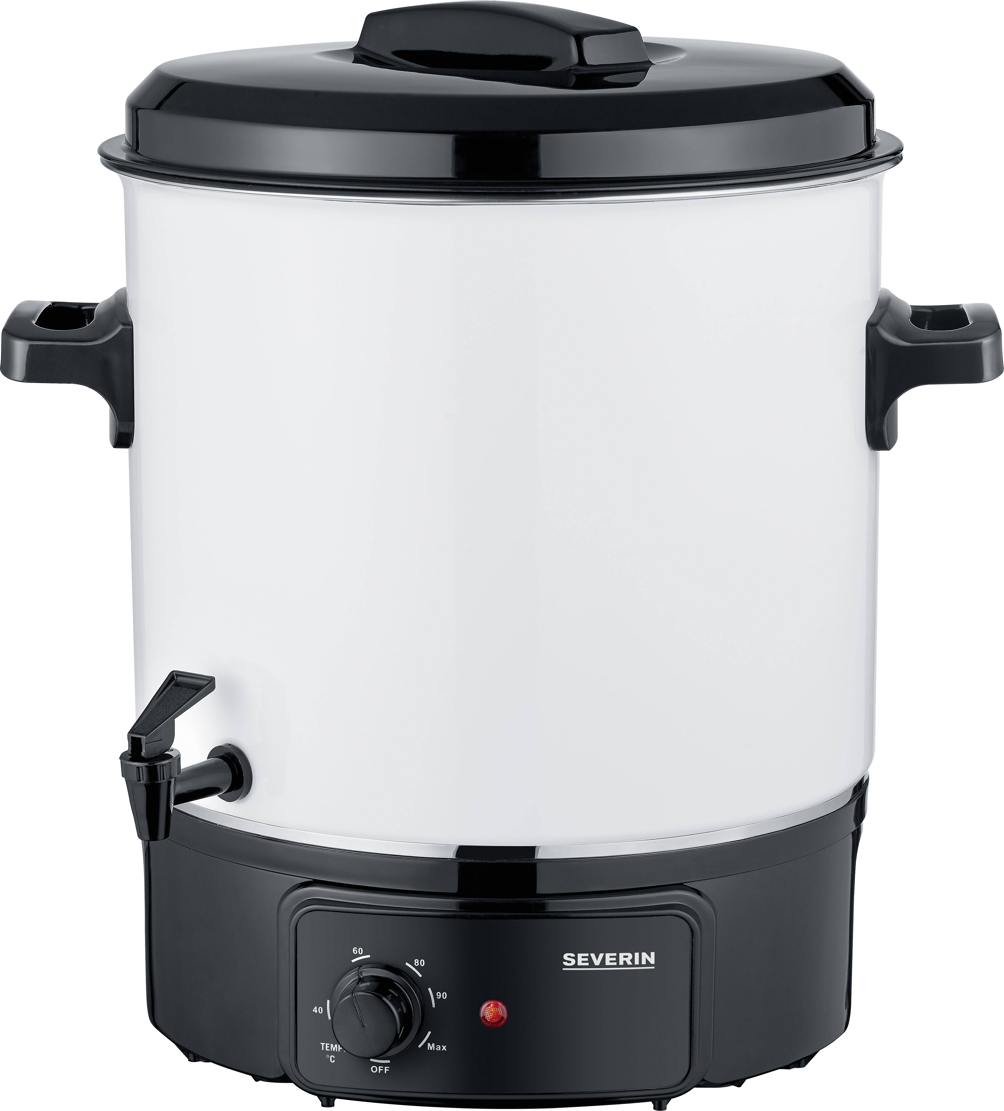 Ob bei einer Feier mit Freunden oder für den Wintervorrat: Der Einkochautomat EA 3654 ist mit seinem hochwertigen Einkochtopf und seiner kratzfesten Emaillierung ein gern gesehener Gast in jeder Küche und auf jeder Feier, denn er eignet sich nicht nur hervorragend zum Erwärmen und Warmhalten von Suppen, Punsch und Glühwein, sondern auch zum Einkochen. Ganz einfach den Sommer nach Hause holen und saisonale Früchte oder Gemüsesorten, aber auch verschiedene Fleischarten schnell und unkompliziert einkochen und beispielsweise über den kompletten Winter verzehren. Der stufenlose Temperaturregler und die gut sichtbare Kontrollleuchte sorgen für eine stets kontrollierte Anwendung. Der praktische Auslaufhahn sorgt dafür, dass die Heißgetränke ganz einfach abgefüllt werden können oder überschüssiges Wasser nach dem Einkochen abgelassen werden kann. Die wärmeisolierten Griffe sorgen für eine sichere Handhabung.
