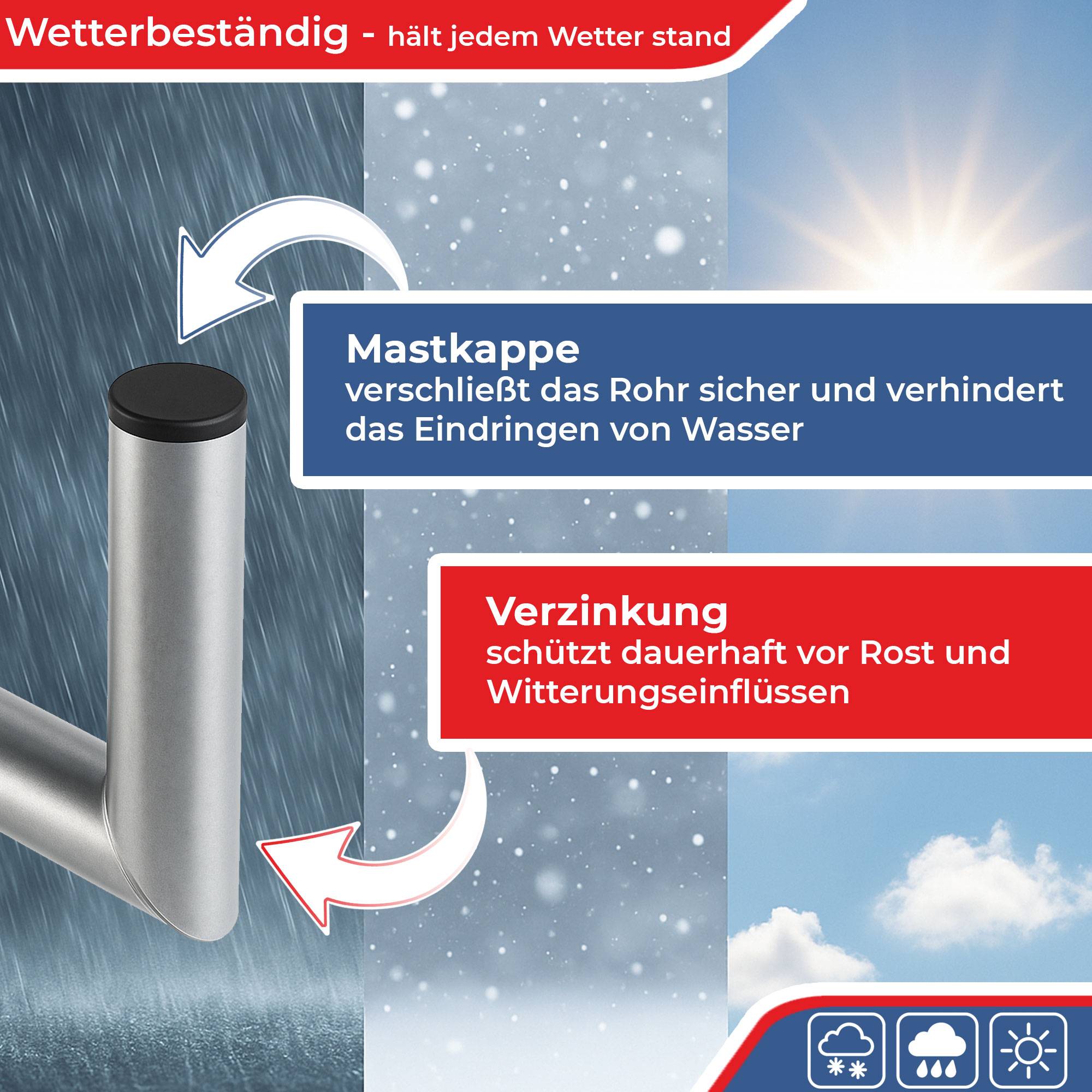 • MASTKAPPE - Vorhandene Kunststoff Mastkappe schützt die SAT-Halterung vor Eindringen der Feuchtigkeit | Widerstandsfähig gegenüber Witterungseinflüssen