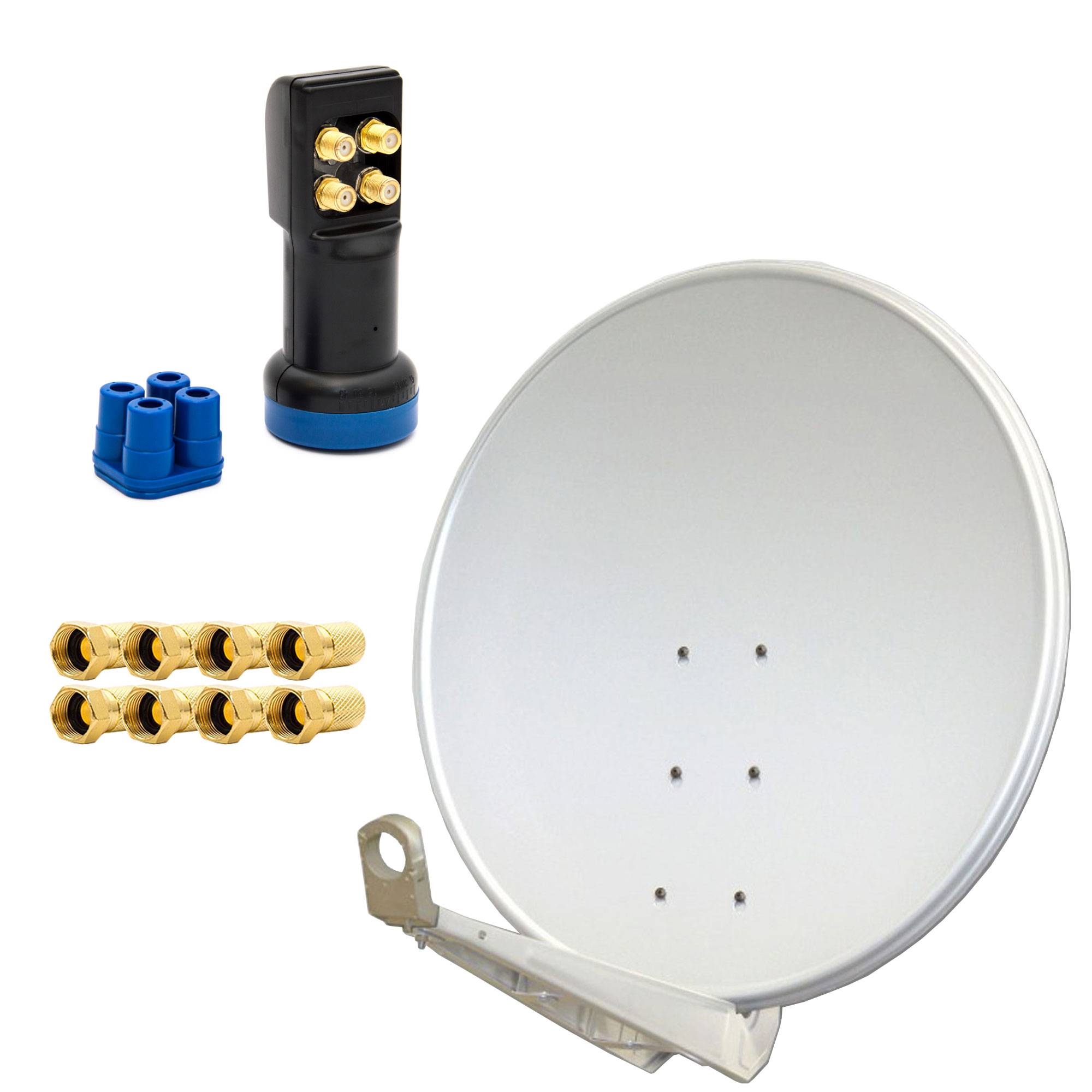 Satelliten Komplettanlage in Premium Qualität für 4 TV Receiver Bestehend aus: 1x PremiumX DELUXE100 Satellitenantenne in ALU Hellgrau, 1x PremiumX PXL-QS LED Quad LNB, 8x F-Stecker mit Dichtring • SAT - Günstige Alternative zu Kabelfernsehen oder DVB-T2 - jetzt Geld sparen • Eingebaute Kontroll LED Lampe Kontrolleuchte - Höchste Qualität, bester Empfang und sehr lange Garantie • Beste Materialien - montagefreundlich, verwindungsfrei, langlebig und sehr stabil • Ideale Lösung von PremiumX für den Empfang des weltweiten Satellitenrundfunks
