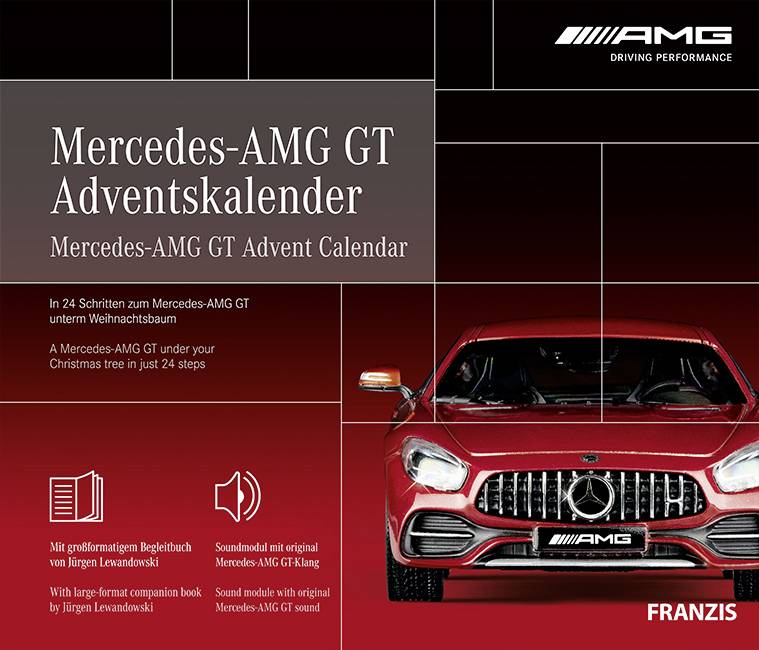 Bestandteil dieses attraktiven Sets ist außerdem ein ca. 60-seitiges Begleitbuch, das Sie Tag für Tag durch die Adventszeit führt. Der bekannte Motorjournalist Jürgen Lewandowski liefert auf unterhaltsame Art und Weise unzählige Informationen zur Unternehmensgeschichte der Sportwagenmanufaktur AMG, den Fahrzeugklassikern des Unternehmens und nicht zuletzt zum Mercedes-AMG GT in all seinen Varianten. Komplettiert wird das Handbuch durch viele Fotos sowie eine ausführliche Aufbauanleitung für das Modellfahrzeug und die elektronischen Komponenten.
