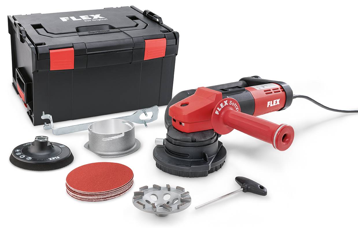 VR-Mikroprozessor-Elektronik: Drehzahlvorwahl, Drehzahlkonstanthaltung mittels Tachogenerator, Sanftanlauf, Wiederanlaufsperre nach Stromausfall, Überlastungsschutz und Temperaturüberwachung. Motor: kraftvoll und durchzugsstark für schnellen Arbeitsfortschritt. Komplett vergossener Elektronikbaustein verhindert Schäden durch Stäube. Der 3-fach Wicklungsschutz reduziert den Verschleiß des Motors und verlängert die Lebensdauer. Spezialgetriebe: spezielle Getriebeuntersetzung für hohes Drehmoment im mittleren und unteren Drehzahlbereich. Staubgeschützter Ein-/Ausschalter. Wirkungsvolle Staubabsaugung durch großen Absaugqürschnitt. Einfache und schnelle Anschlussmöglichkeit mit dem FLEX Clip-System. Keine Adapter und Reduziermuffen erforderlich. Absaughaube: mit stufenloser Höhenverstellung. Universell einsetzbares Werkzeugsystem, das für viele Anwendungen beim Renovieren und Modernisieren angepasst werden kann. Kompakt, handlich und ideal geeignet für die Bearbeitung kleinerer Flächen sowie für die Randbereiche großer Flächen. Spindelarretierung. Schleifteller geeignet zum Abschleifen von Betonteilen, Anschleifen von verwittertem Altbeton, hartem Zementputz, zum Entfernen von Schalungsübergängen und Betonläufern, ausgehärteten Epoxidharzbeschichtungen und der Sinterschicht an Betonteilen. Hohe Schleifleistung und Lebensdaür durch neuartige Segmentkonstruktion. Optimale Untergrundvorbereitung für eine weitere Beschichtung.