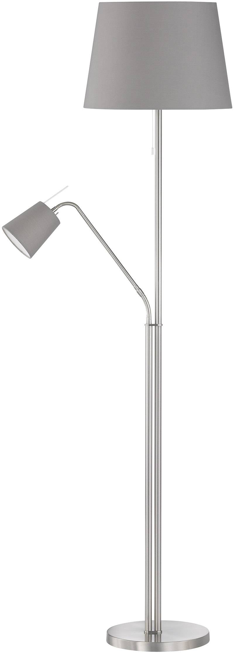 Flexibel und effizient, zeitlos und formschön präsentiert sich diese Standleuchte mit schwenkbarem Lesearm. Die elegante Oberfläche in nickelfarben matt, sowie die Stoffschirme in Chintz grau, passen sich so gut jedem Einrichtungsstil an. Diese Stehleuchte „Layer“ der Firma Fischer & Honsel ist ein wahrer Blickfang für Ihr Zuhause. Der Lesearm bringt das Licht auf den Punkt und kann durch die Verstellbarkeit des Kopfes jederzeit bedarfsgerecht ausgerichtet werden. Die beiden Lichtquellen sind getrennt schaltbar und so zum Lesen, Handarbeiten , oder einfach nur Relaxen geeignet. Ein zuverlässiger Begleiter für Ihren Wohnraum. Mit einer Höhe von 175 cm und einer Ausladung - Lesearm - von 50 cm ist diese Stehleuchte ein „must have“ für den modernen Wohnraum. Der kleine Schirm mit einem Durchmesser von 12 cm Durchmesser, bestückt mit 1xE14 max. 40 Watt, und der große Schirm mit einem Durchmesser von 40 cm, bestückt mit 1xE27 max. 60 Watt, leuchten Ihren Raum unaufdringlich aus. Beide Leuchtmittel werden nicht mitgeliefert .