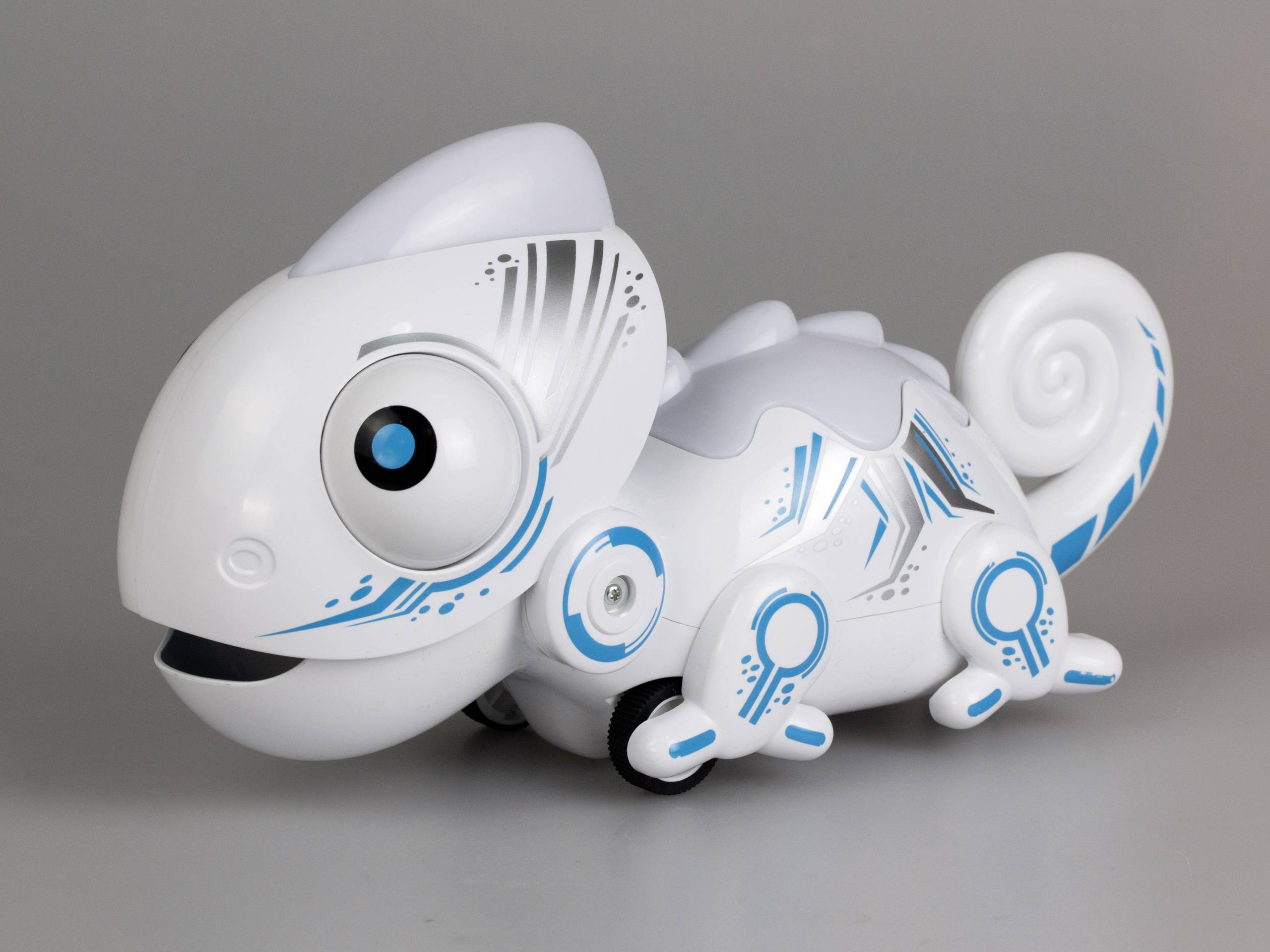 Bewegen, zielen und fangen! Roboter-Chamäleon, das seine Zunge herausschießen und das Futter aufschnappen kann! Bringen Sie Ihr Robot Chameleon einfach zu seinem Ziel, zielen Sie per Fernbedienung und seine eingebaute ausfahrbare Zunge kann das Futter auffangen. Es hat einen LED-beleuchteten Körper, der in mehreren Farben leuchten und wechseln kann. Die Augen und der Schwanz des Robot Chameleon bewegen sich ebenfalls, wenn es läuft, und sein Mund kann mit gesammeltem Futter gefüllt werden. Ein lustiges Spielzeug für Jung und Alt.