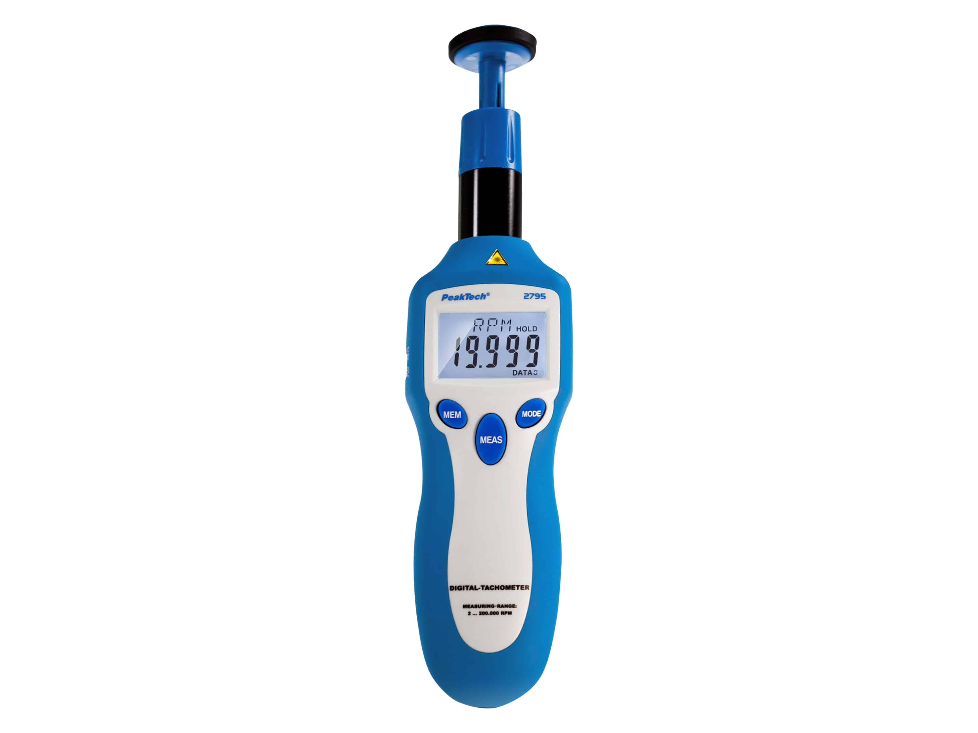 Dieses Digitale Drehzahlmessgerät mit einer digitalen 5-stelligen 13 mm LCD-Anzeige, welches über eine Hintergrundbeleuchtung verfügt, liefert eine schnelle und genaue Drehzahl- und Oberflächengeschwindigkeitsmessung rotierender Objekte. Durch die kontaktlose oder aber auch mittels des Messadapters für Messungen durch direkten Kontakt zum zumessenden Objekt, können diverse Geschwindigkeiten, mit dem PeakTech 2795 ermittelt und aufgenommen werden. Features: - Großer Messbereich und hohe Auflösung - Laserausrichtung (Klasse 2 Laser; < 1 mW) - Batteriezustandsanzeige - Autom. Bereichswahl - Messtyp: Drehzahl, Gesamtumdrehungen, Frequenz, Oberflächengeschwindigkeit und Länge Technische Daten: - Digitalstellen: 200.000 - Anzeige Art: LCD - Messart: Drehrad, Kontaktlos - Messbereich: 1... 19999 REV, 2... 199999 Rpm - Anzeige: 5-stellige LCD-Anzeige (15 mm) - Genauigkeit: +/- 0,05 % + 1 Stelle - Messfolge: 0,5 Sek. (bei mehr als 120 UpM) - Reichweite: 50... 500mm - Messbereich: 50... 500 mm (Foto-Tacho) - Laserstrahlgerät Klasse 2, Ausgang < 1mV, - Wellenlänge: 630 – 670 nm - Leistungsaufnahme: ca. 45 mA - Betriebstemperaturbereich: 0 .. 50°C - Spannungsversorgung: 9 V- Batterie Lieferumfang: - 1x Drehzahlmessgerät - 1x Tasche - 3x reflektierendes Klebeband - 1x UpM-Adapter - 1x Messrad - 1x Batterie - 1x Bedienungsanleitung