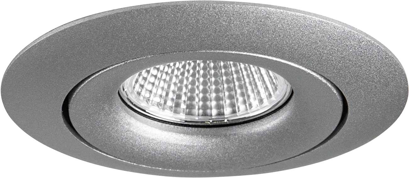 LED-Einbaustrahler, silber, rund. Ausgeführt in kompakter Bauform für werkzeuglose Schnellmontage zum Deckeneinbau. Fassung: Plug&Play, Montageart: Einbaumontage, Montageort: Deckenmontage, Material: Aluminium / Kunststoff, Schutzart: nach DIN EN 60529: IP20, Schutzklasse: (EN 61140) III, Strom: 350 mA, Leistung: 7W, Anzahl der Leuchtmittel / Fassungen: 1.0 Stk, Lichtstrom: 600lm, Farbtemperatur: 3000K, Lichtfarbe: weiß, Abstrahlwinkel: 40°, Verstellbarkeit: schwenkbar, ohne Betriebsgerät, Art der Dimmung: sonstige,