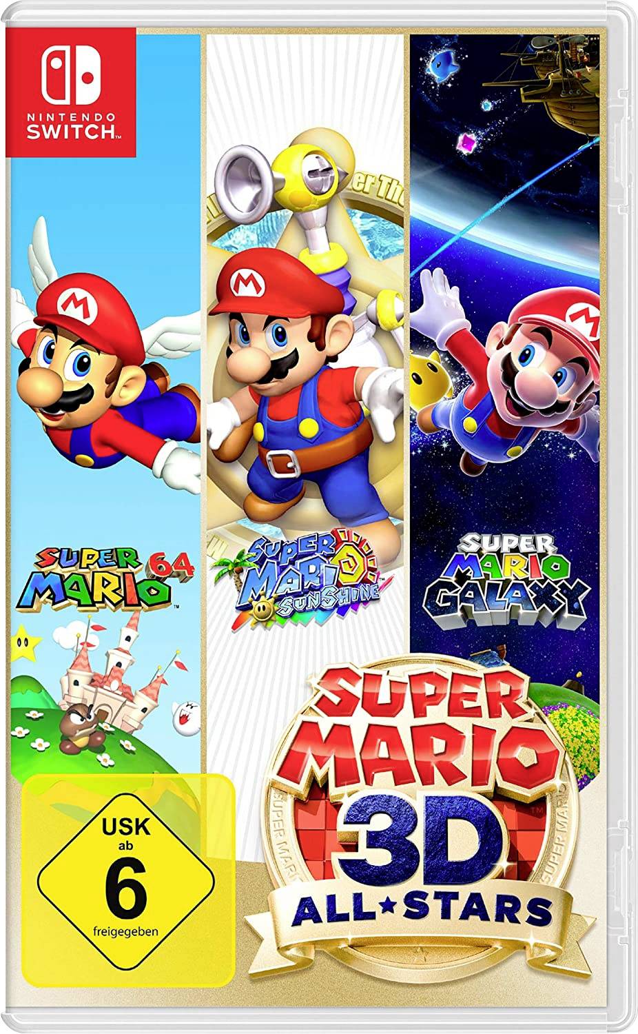 Entdeckt drei von Marios besten 3D-Abenteuern in Super Mario 3D All-Stars für Nintendo Switch! Diese besondere Sammlung enthält Super Mario 64, Super Mario Sunshine und Super Mario Galaxy. Alle Spiele sind für Nintendo Switch optimiert und enthalten überarbeitete HD-Grafik, Joy-Con-Steuerung sowie einen Musikspieler mit der Musik aller drei Spiele!
