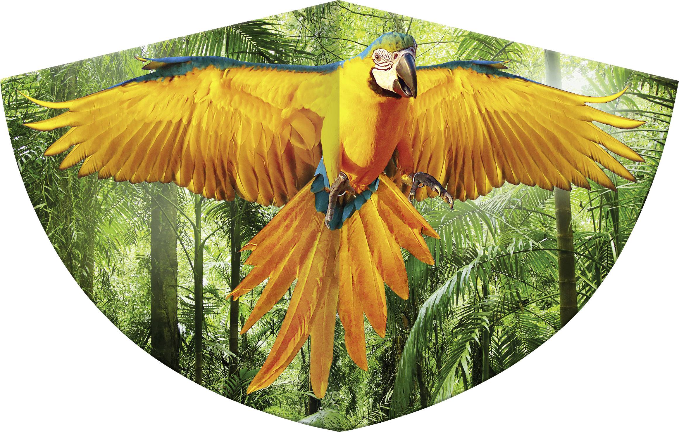 Kinderdrachen Papagei. Segel aus Polyethylenfolie. Komplett mit Wickelgriff und Schnur. Größe: ca. 75 x 48 cm.