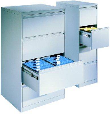 Hängeregistraturschrank, 2-bahnig, Breite 760 mm | Langlebige Ausstattung Stahlkonstruktion, geeignet für die Hängeablage im DIN-A4-Format in 2, 3 oder 4 Schubladen. Korpus und Schübe in RAL 7035 lichtgrau. Wechsel-Schlosszylinder mit 2 Schlüsseln und Ze