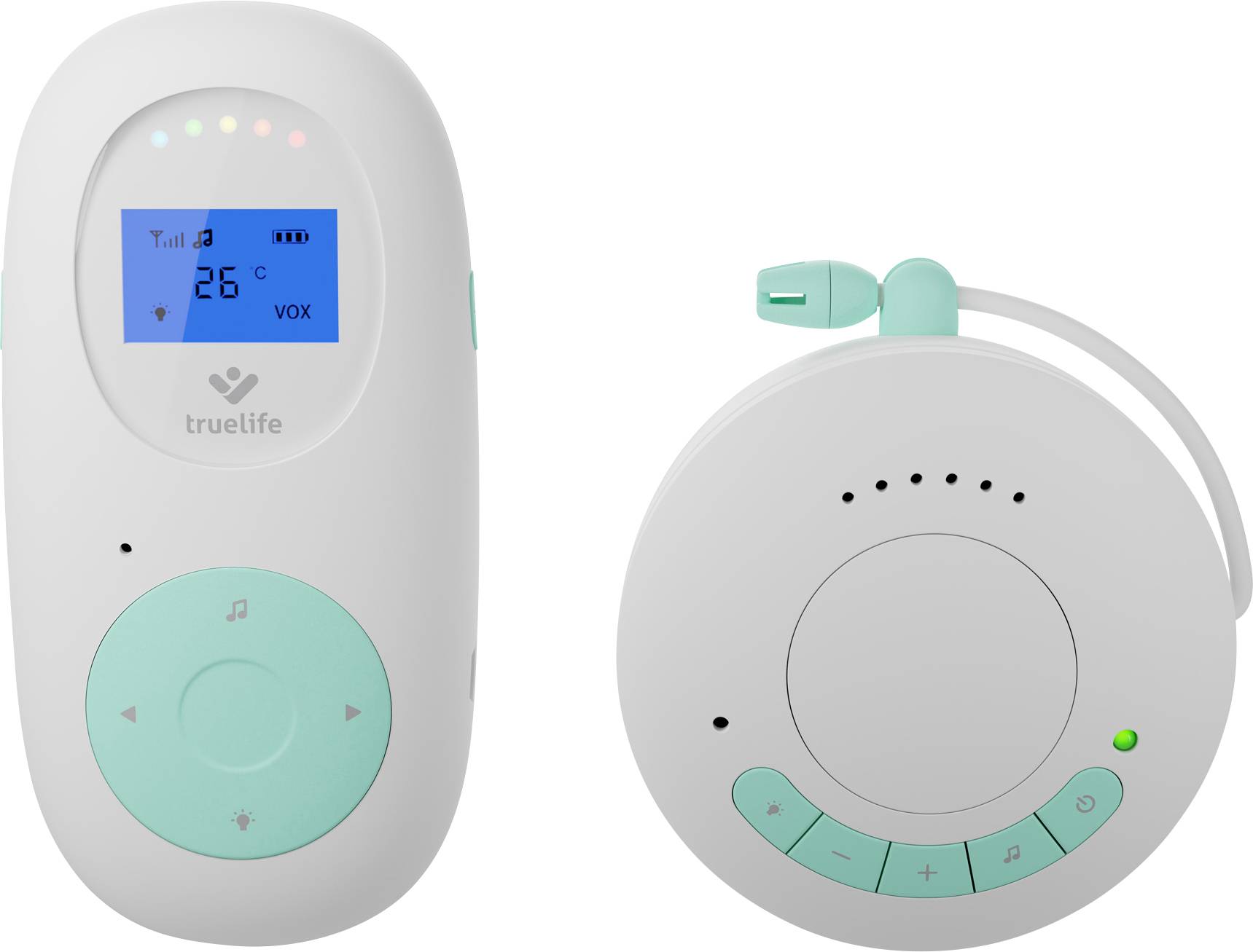 truelife, TLNTVM1, NannyToneVM1, Babyphone, Babyfon, Baby-Phone, Überwachung, Sicherheit, sicher hohe Reichweite, hoch, bidirektional Audio Übertragung, Thermometer, Nachtlicht, Temperatur, Vox energiesparend Akku, Netzteil mobil