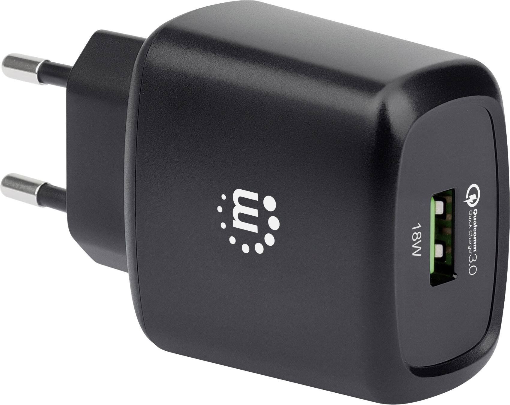 Manhattan 102384 USB Ladegerät 18 W USB 3.2 Gen 1 Buchse A (USB 3.0) Schwarz Steckdose Qualcomm Quick Charge 3.0