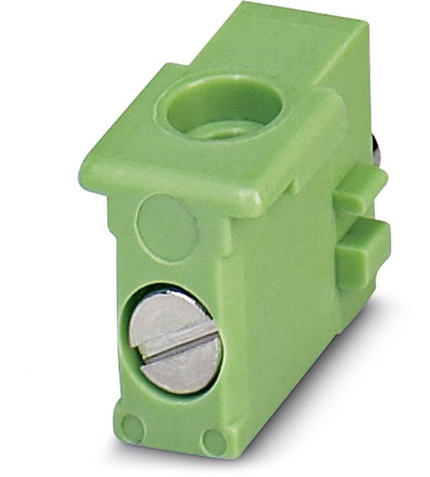 Befestigungsflansch, zur beidseitigen Schraubbefestigung des Grundgehäuses auf der Leiterplatte, aus grünem Isolierstoff, mit Schraube 2 x 14 und Mutter.