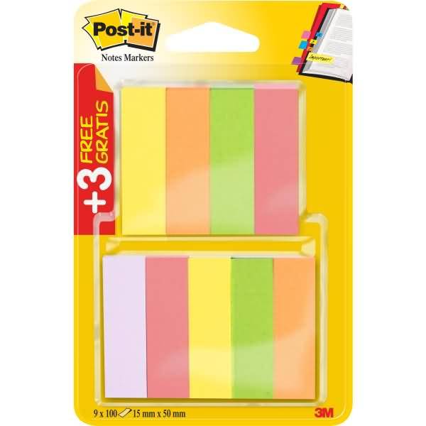 Haftstreifen Page Marker schmal, 15x50mm 6 x100 Blatt+ 3x 100 Blatt neonfarben