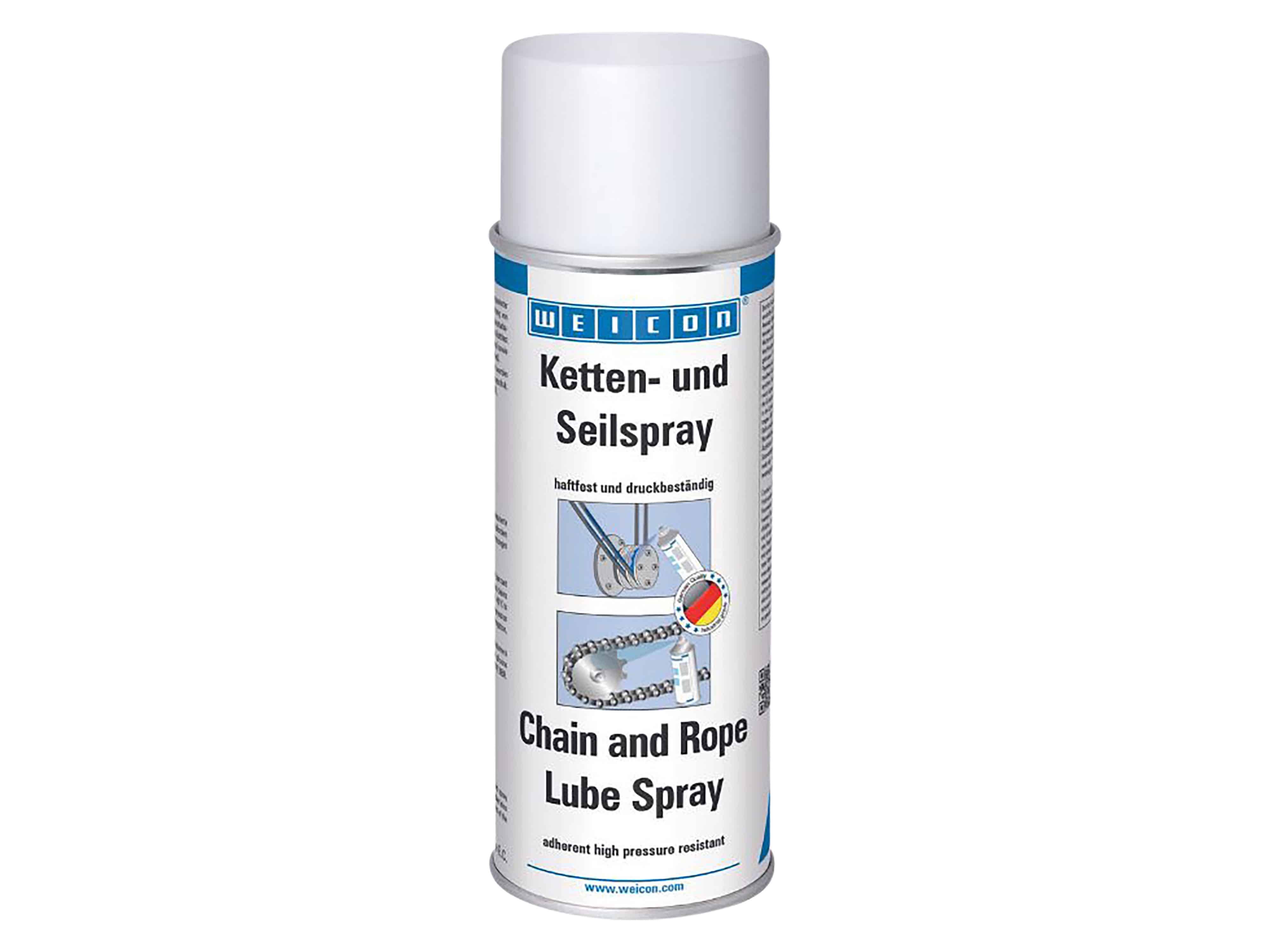 WEICON Ketten- und Seilspray ist ein synthetischer, transparenter Haftschmierstoff für die dauerhafte Innen- und Außenschmierung von hochbeanspruchten Ketten und Drahtseilen aller Art. Ketten- und Seilspray ist besonders haftfest und druckbeständig, extrem kriechfähig, geräuschdämpfend sowie wasserabweisend und verhindert Längung, Reibung und Verschleiß. Das Spray kann an Ketten und Drahtseilen aller Art, Zahnrädern und Schneckengetrieben, schnelllaufenden Maschinenteilen, Gelenken und Kupplungen, Rollen und Kugellagern und Federpaketen in vielen Bereichen der Industrie zum Einsatz kommen. Technische Daten: - Farbe: transparent - Merkmale: geräuschdämpfend - Temperaturbeständigkeit: -40 °C bis +200 °C - Inhalt: 400 ml Lieferumfang: - Ketten- und Seilspray, 400 ml