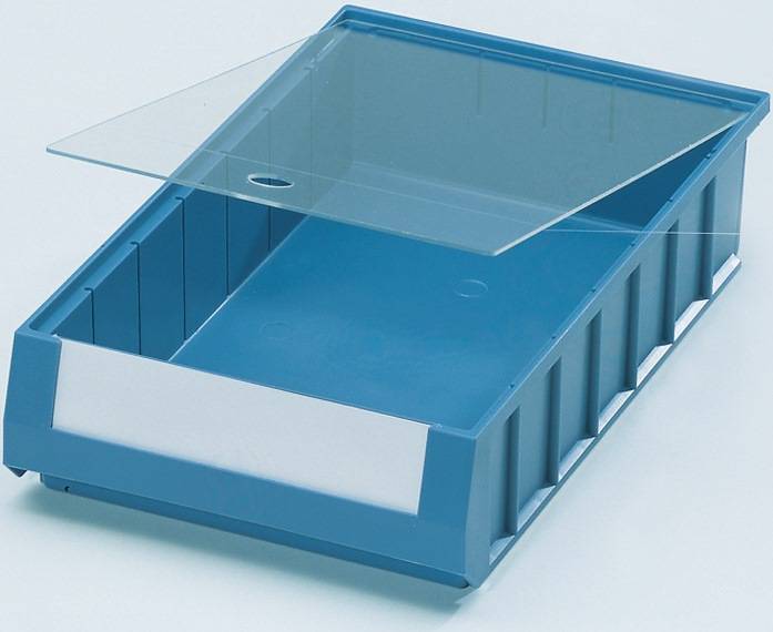 für Regalkästen · glasklar, aus Polystyrol · die Kästen werden komplett abgedeckt, jedoch weiterhin problemlos stapelbar · VE = 10 Stück Weitere technische Eigenschaften: · Farbe: glasklar