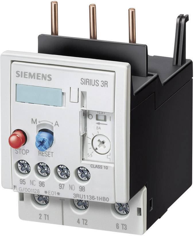 Das thermische Überlastrelais 3RU11 ist für den stromabhängigen Schutz von Verbrauchern mit Normalanlauf gegen unzulässig hohe Erwärmung infolge von Überlast oder Phasenausfall konzipiert. Bei unzulässiger Erwärmung schalten die integrierten Hilfsschalter (1S + 1Ö) über ein Motorschütz (z.B. 3RT10) den Motor ab.
