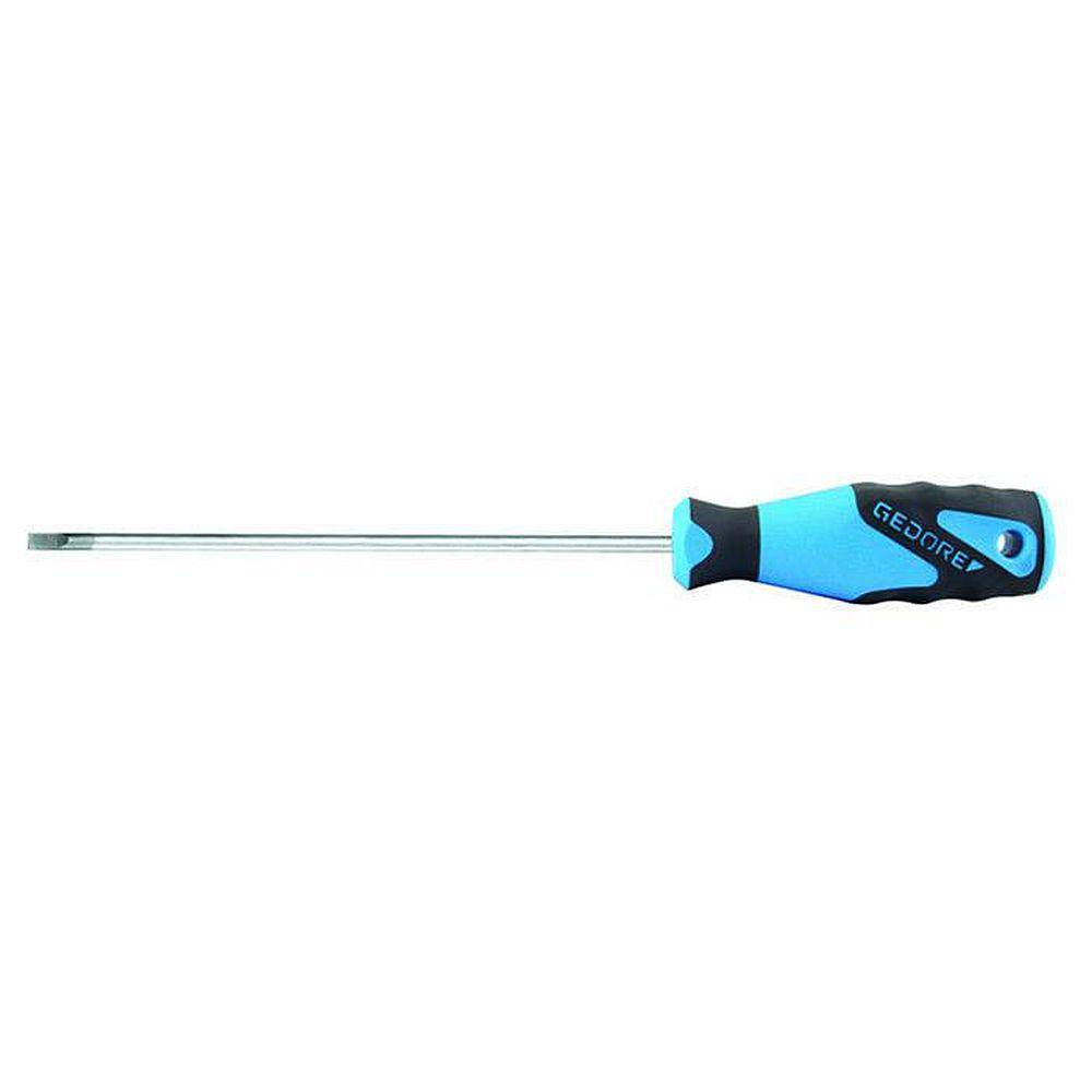 Einsatzbereich Der 3K-Schraubendreher ist besonders gut geeignet zum kraftvollen und präzisen Lösen und Anziehen von Schlitzzschrauben Beschreibung Ausführung nach DIN ISO 2380-2 Schneide nach DIN ISO 2380-1 Form B 3-Komponenten-Griff Power-Grip3 mit Aufhängeloch ergonomische Griffform für präzises und ermüdungsfreies Arbeiten formschlüssige Verbindung von Griff und Klinge für optimale Kraftübertragung Antriebsform-Markierung am Griffende Klinge aus GEDORE Molybdän-Vanadium-Plus Stahl vergütet Technische Daten Schneidenbreite (a, b) - 2,0 bis 6,5 mm Klingenstärke - 0,4 bis 1,2 mm Klingenlänge (L2) - 60 bis 200 mm Länge - 145 bis 310 mm Klingendurchmesser - 2,0 bis 6,0 mm
