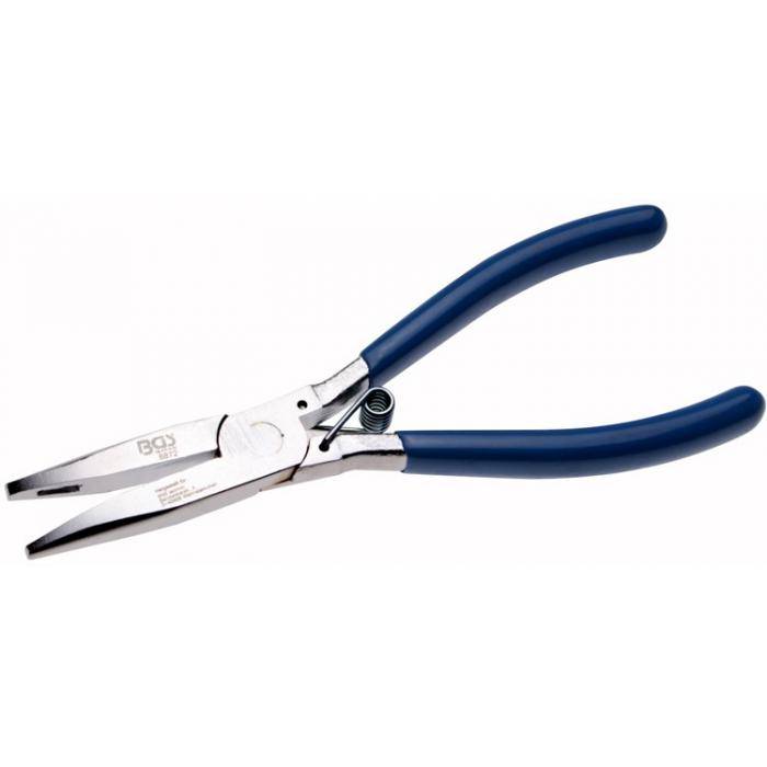 Einsatzbereich Die Polster-Klammer-Zange erleichtert das befestigen von KFZ-Sitzbezügen Anwendung gummierter Griff für einen Rutschfestes Arbeiten Federmechanik hält die Klammer in der Spezialnut der Zange, erleichtert dadurch das Ansetzen und Zusammendrücken der Klammer Technische Daten Griffe - gummiert
