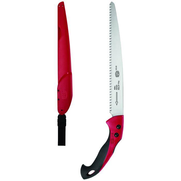 Einsatzbereich die Baumsäge FELCO 611 aus der Produktreihe "Grün" ist für den Einsatz im Obstbau und in Gärten und Parks sowie im Weinbau geeignet besonders für das Schneiden frischer Hölzer Beschreibung Säge mit ziehendem Schnitt, verringert den Kraftaufwand und vermeidet eine Verdrehung des Sägeblattes, für saubere und präzise Schnitte die konische Form des Sägeblattes verhindert das Verkrusten des Sägeblattes durch die Wärme-Impulsbehandlung verlängert sich die Haltbarkeit der Schneide die Geometrie des Sägeblattes sorgt für ein Sägen ohne Vibrationen, die Zahlgeometrie verbessert den Transport der Späne, verhindert die Verkrustung, sorgt für einen sanfteren Sägeangriff und vermeidet Rückstöße Griffe ergonomisch, komfortabel und rutschfest für alle Erziehungs- und Ertragsschnitt von Bäumen, Sträuchern und Büschen, für Schnittarbeiten an Rebstöcken und für die Pflege und Reinigung von Parzellen, Hecken und Bepflanzungen wartungsfrei für kleine bis große Hände mit Etui für Rechts- oder Linkshänder mit abnehmbarer Gürtelschlaufe Technische Daten Material Sägeblatt - korrosionsbeständiger Chromstahl Länge des Sägeblattes - 330 mm Gesamtlänge - 500 mm Gewicht - 370 g