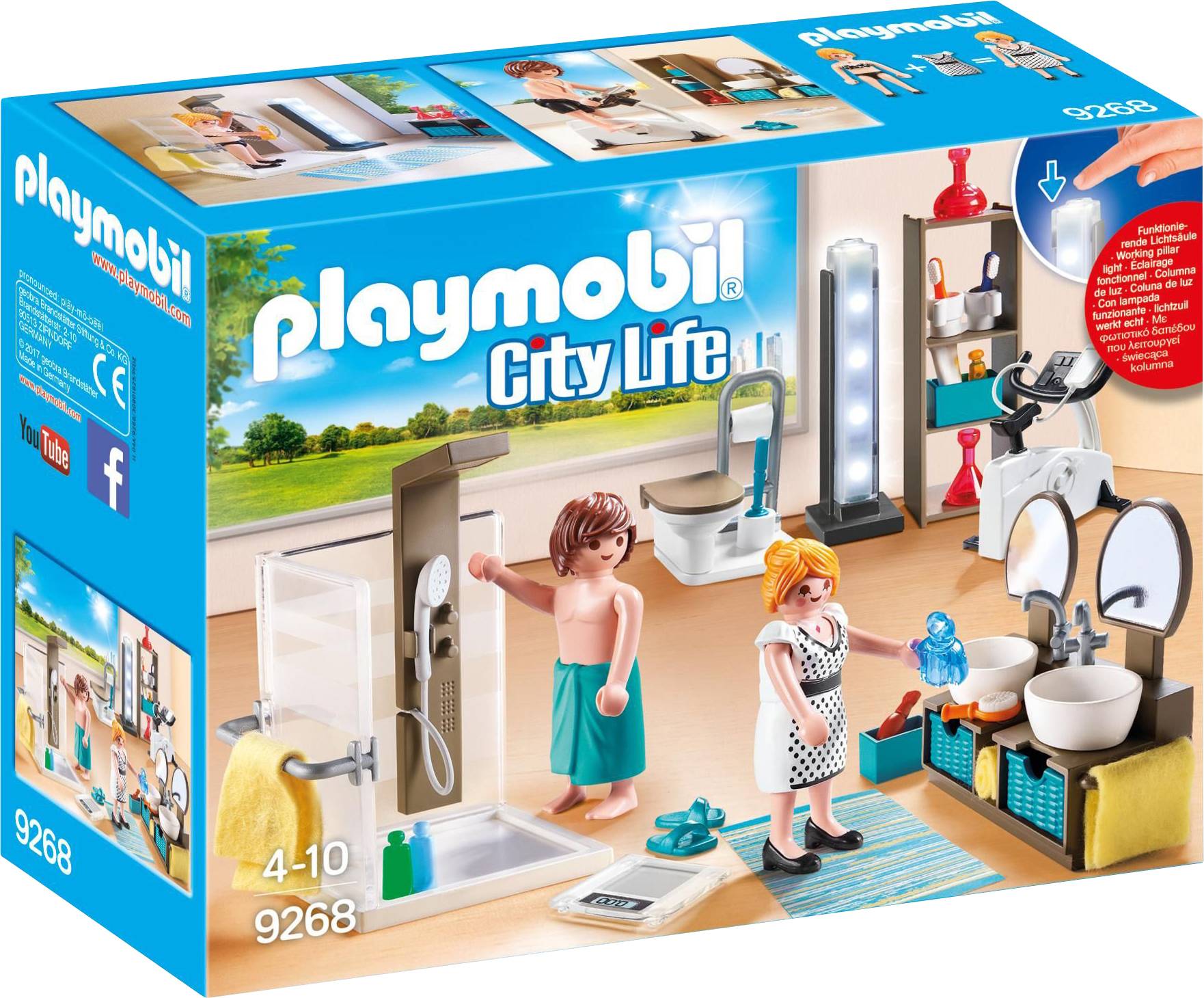 Ausgestattet mit Dusche, WC und Doppelwaschbecken sowie einem Fitnessrad. Die funktionierende Lichtsäule spendet angenehmes Licht (benötigt 1 x 1,5V-Micro-Batterie).