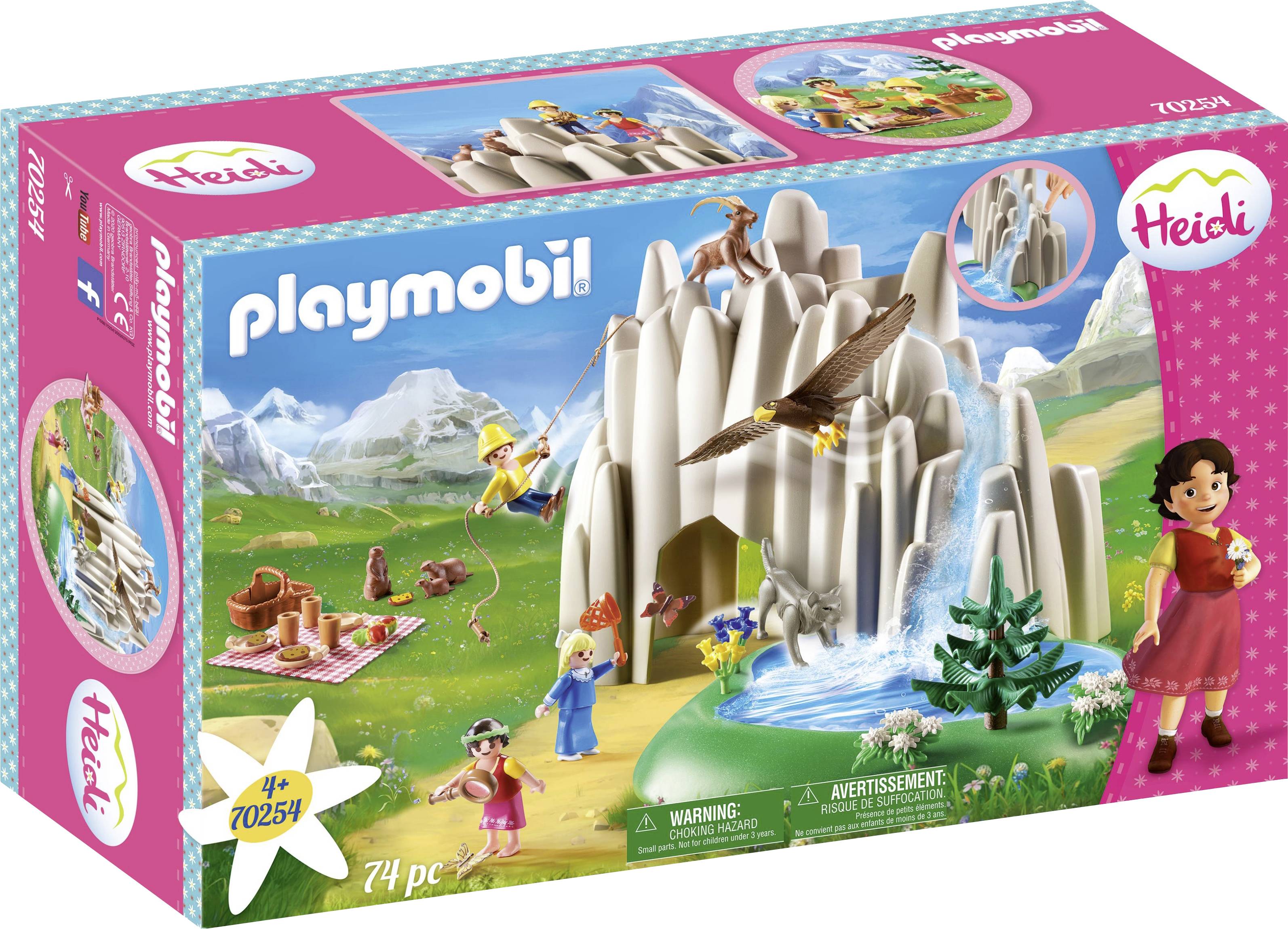 Das Becken des Kristallsees kann mit Wasser befüllt werden. Durch wiederholtes Drücken der Pumpe entsteht ein Wasserlauf im Felsen. Mit Picknickset und vielen Bergtieren.