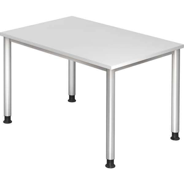 Schreibtisch 4-Fuß-rund 120x80cm Weiß/Silber