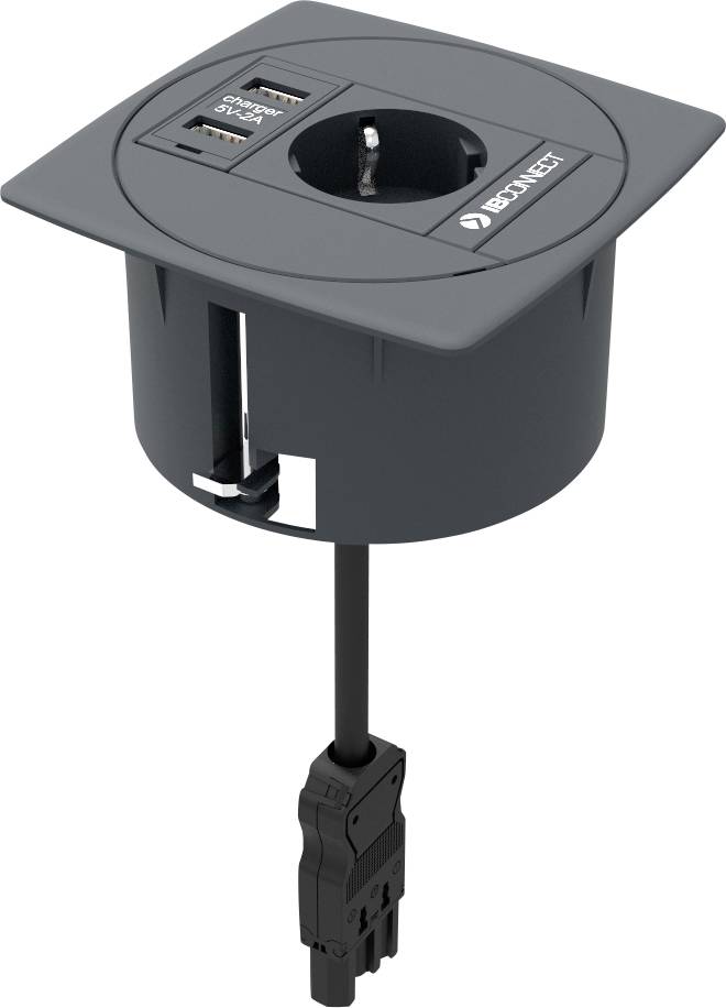 Die Basislösung für die elektrische und multimediale Konnektivität eines Arbeitsplatzes. Es fixiert den Orgatech-Wirbel direkt und enthält Kabelführungsräume für den zusätzlichen Kabelzugang. Nicht elektrifiziert, kann der Orgatech-Wirbel direkt auf dem Boden oder an der abgehängten Decke befestigt werden; dies ist der Beginn der Kabelorganisation in einer Installation.