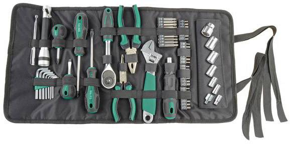 Die 65-tlg. Werkzeug-Rolltasche aus dem Hause Brüder Mannesmann ist der optimale Begleiter fürReparaturarbeiten zu Hause und unterwegs. Mit dieser Werkzeug-Rolltasche haben Sie immer das passendeWerkzeug zur Hand. Das Werkzeug wird zuverlässig und sicher von elastischen Schlaufen gehalten. Diekomplette Tasche kann nach Beendigung der Arbeit leicht und platzsparend zusammengerollt werden.